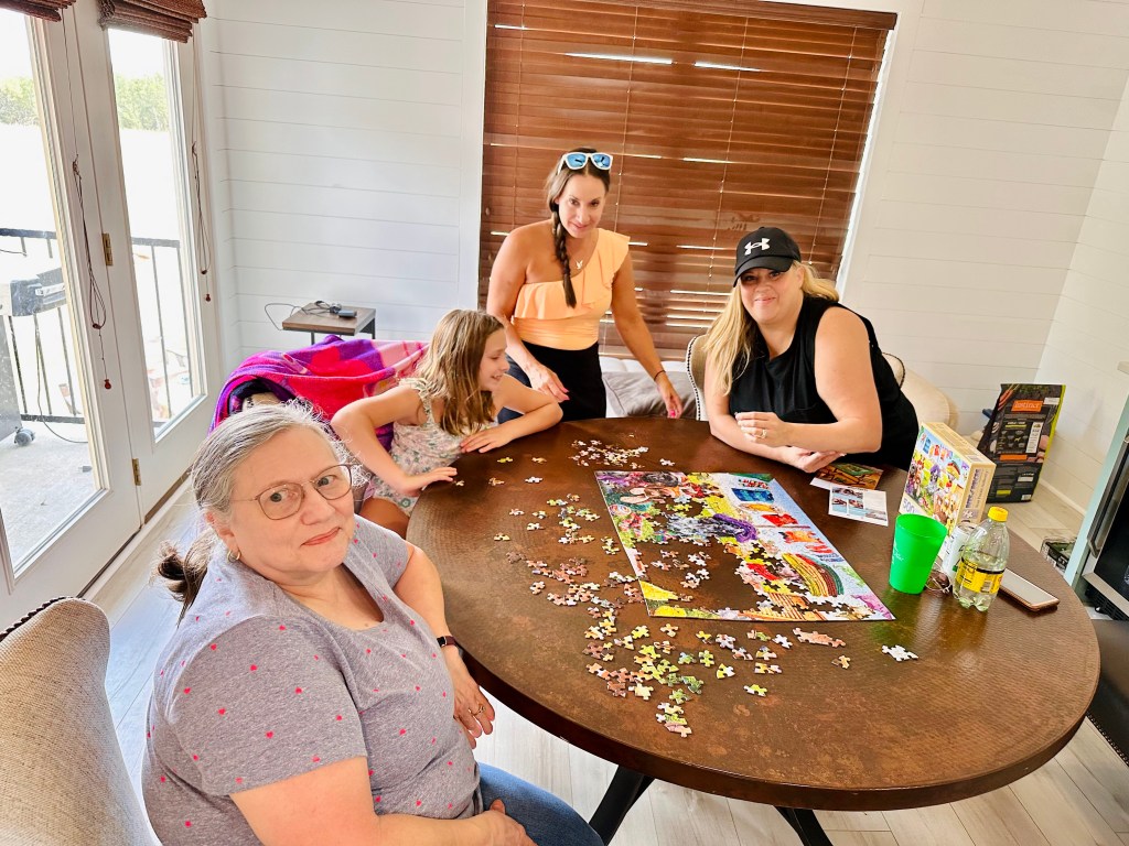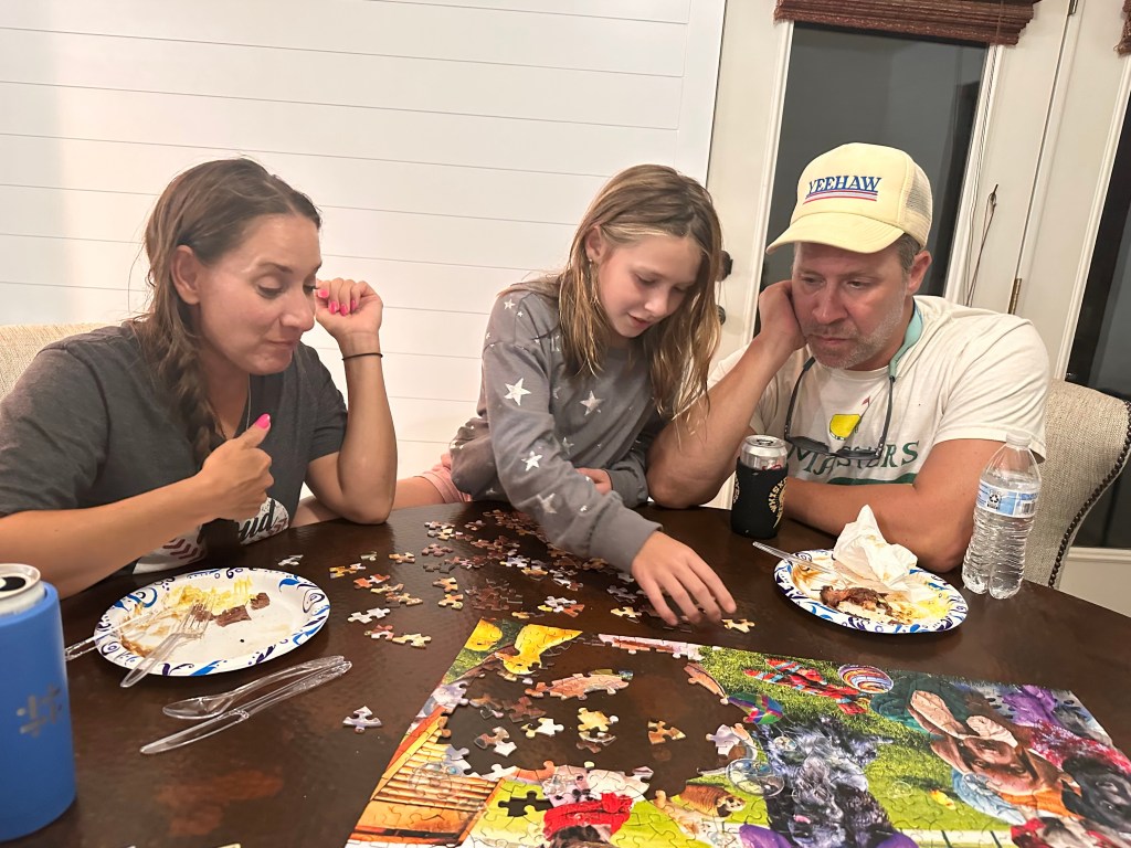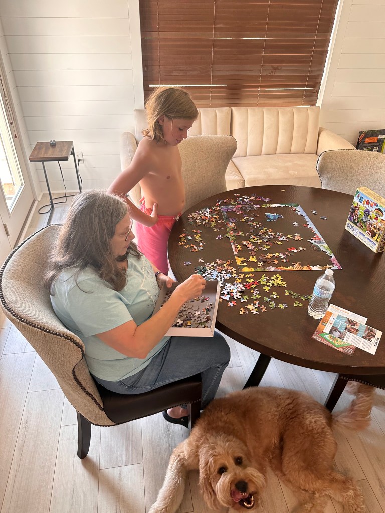 And meanwhile, up at the lake….Brooks and Grandma were having fun working on a puzzle while Otter stood guard, lol!