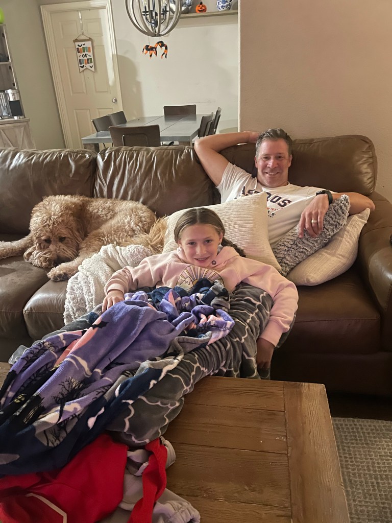 Ellis wanted to sit in between Daddy’s legs to watch the game, just like old times!