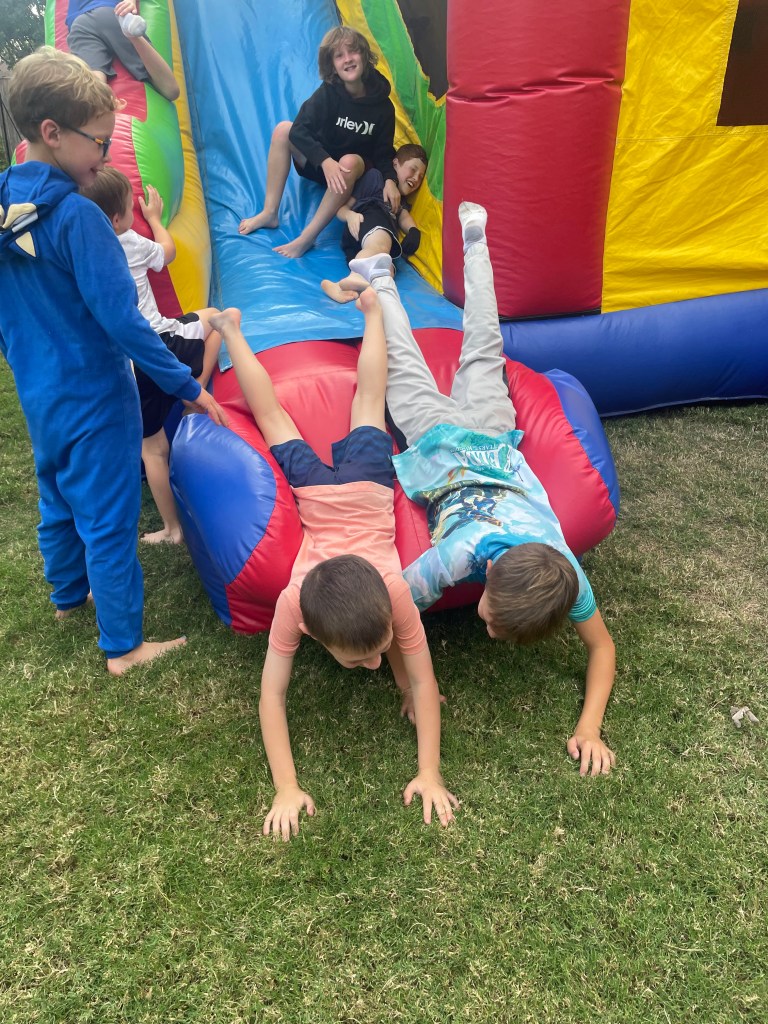 Just a “small” play date with a “few” friends and a “tiny” little bounce house, hehe…