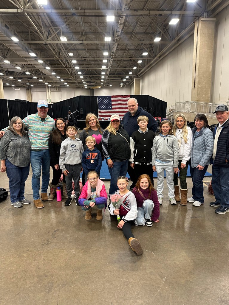 This was Ellis’ entire entourage who came to support our girl (minus Cristin and Nancy who were in the restroom)!!! Grandma, Aunt Kelly, Aunt Lesley, Uncle Christian, Liam, and Levi also drove up all the way from Houston straight to the competition! Goodness are we blessed!