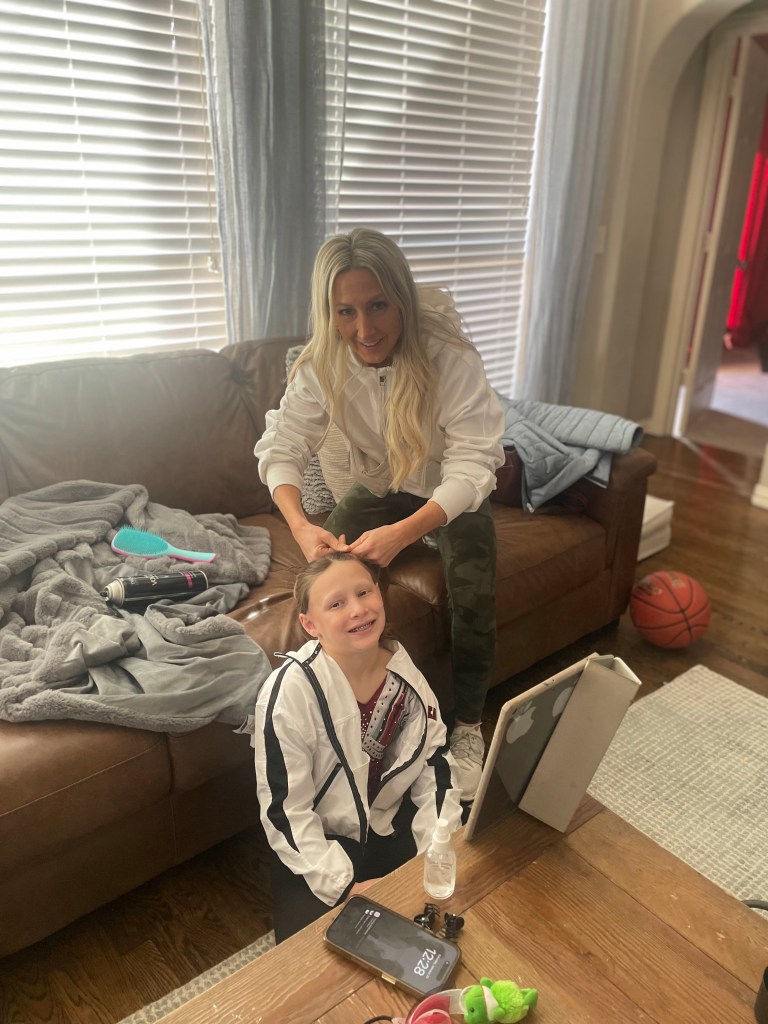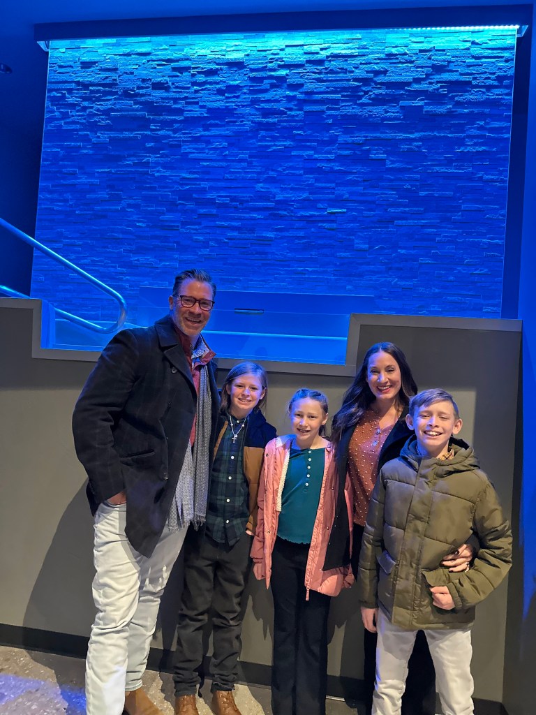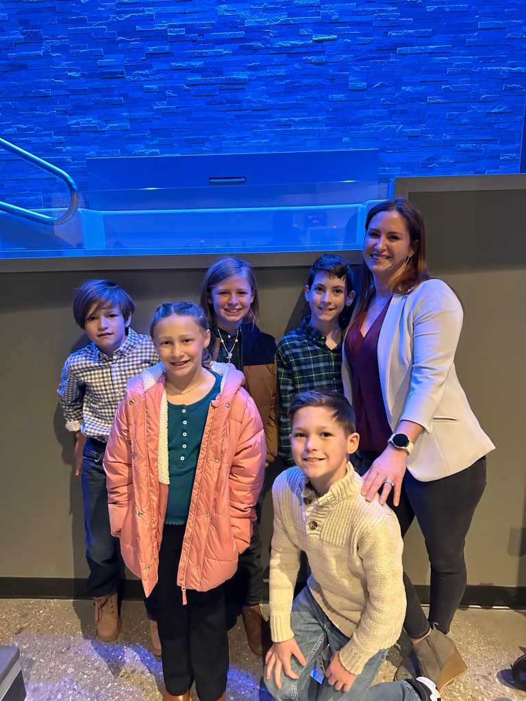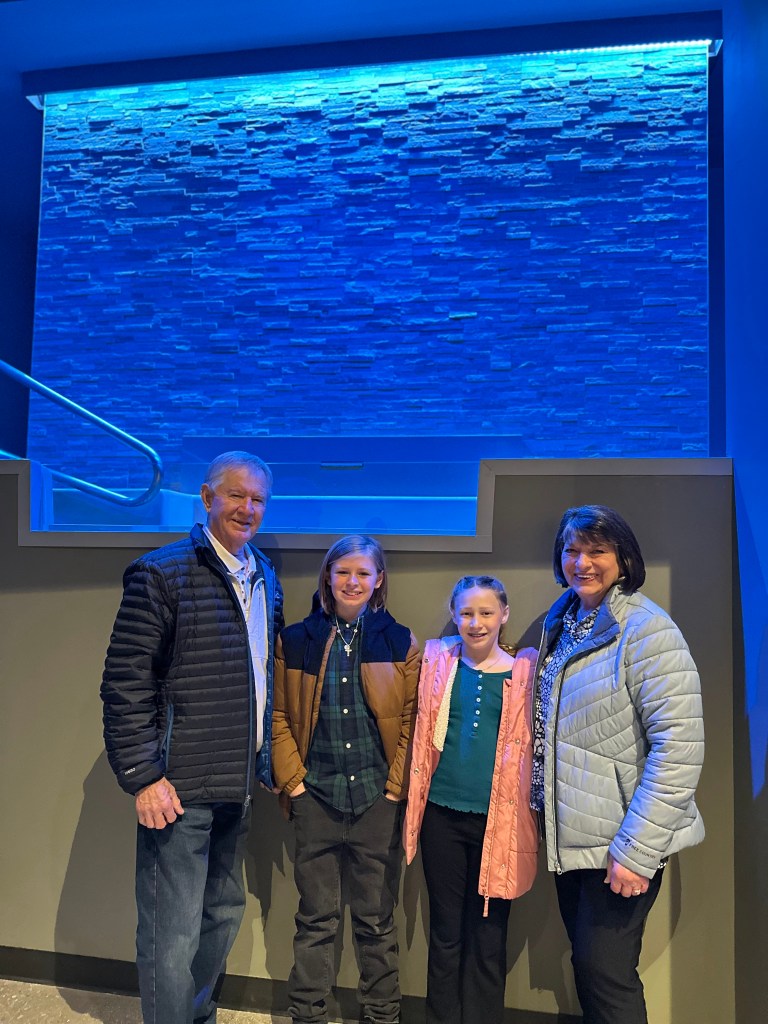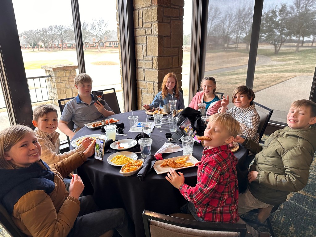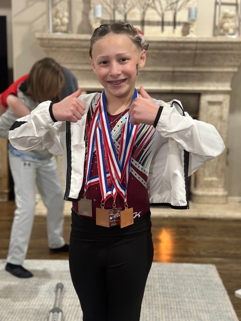 The awards ceremony takes a while, so her entourage left after the competition. Ellis couldn’t wait to come home and show everyone her medals!! We had 9 extra family members stay with us on Saturday and my heart was so happy! My parents slept in our room, Jeanne slept in Shep’s room, Grandma and Kelly slept in Ellis’ room, the Stroem’s slept in Brooks’ room, and we all bunked up in the media room! It was perfect!