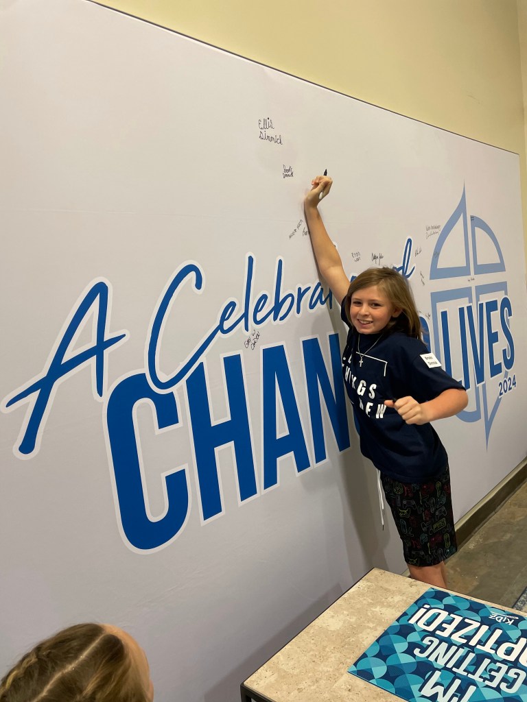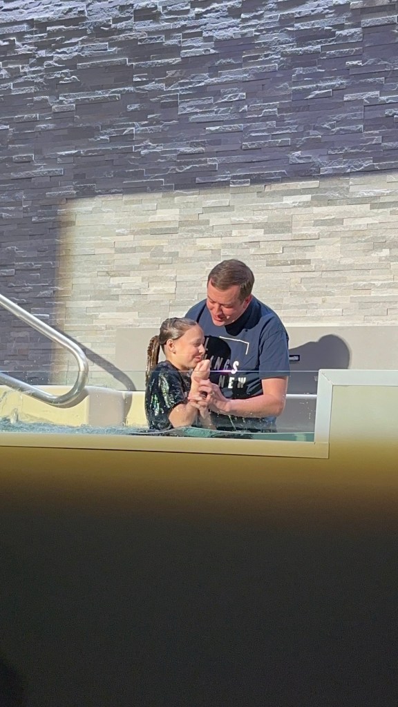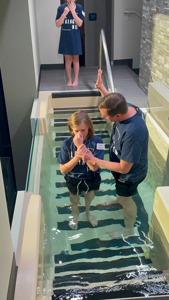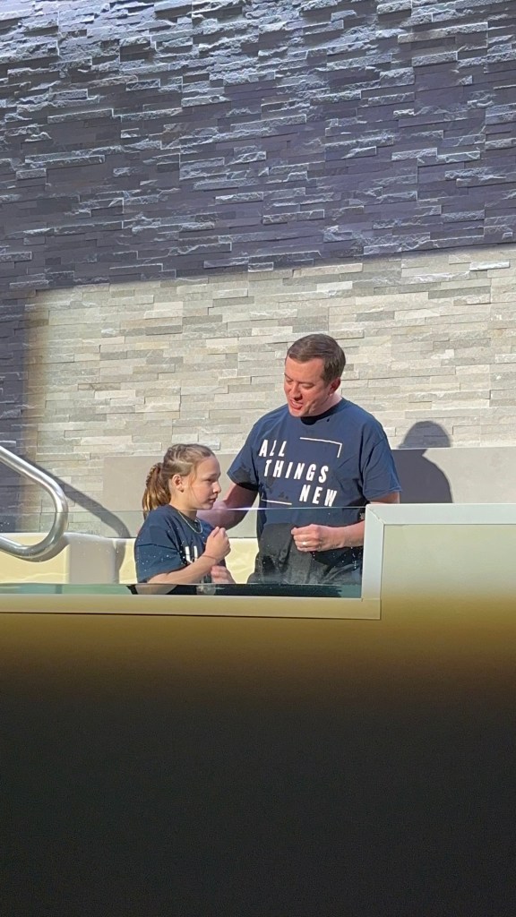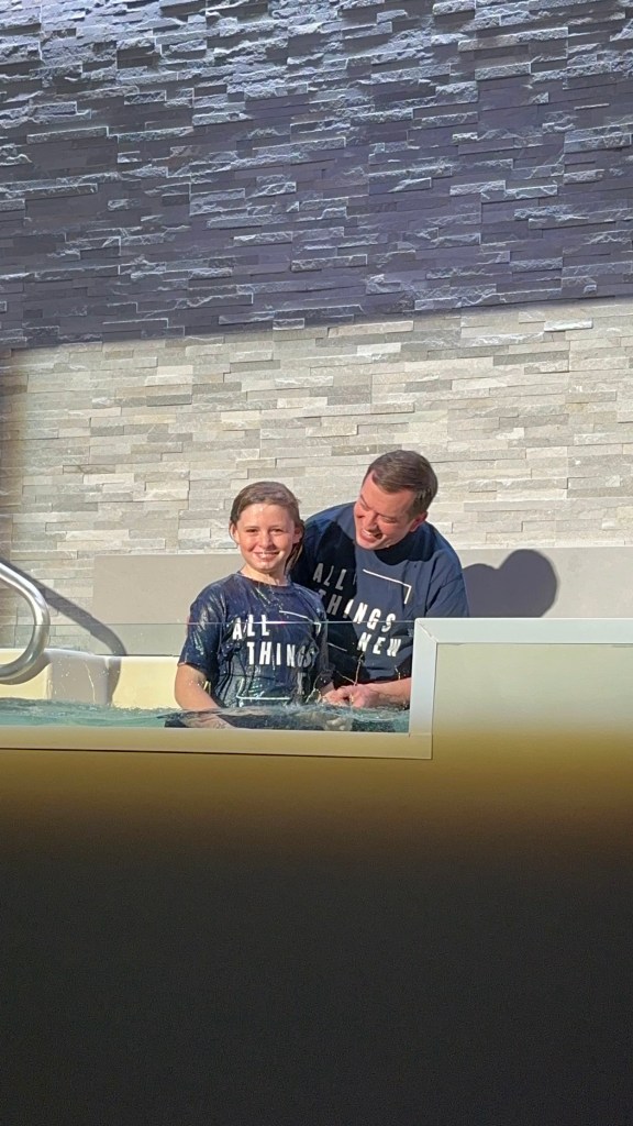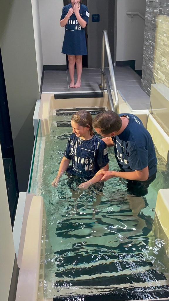 Sunday morning was the main reason everyone came in town. To give you a little back story, Ellis has been asking for quite a while now to be baptized. She actually started thinking about it and asking after watching her cousin, Brayden be baptized. We’ve had many long heart to heart convos with her to make sure she understood the decision she was making and what she was asking, and decided she was ready. The problem was, we were in the middle of searching for a new church. Ellis’ insistent asking to be baptized is actually what pushed us to find “our” church! Ellis’ constant talking about baptism as well as the talks he had with his counselor at church camp this summer, and the talks he has with Daddy at bedtime, is also what gave Brooks the nudge to want to be baptized too! We had many heart to heart convos with him as well to make sure he understood the importance of his decision, and decided he was ready too!