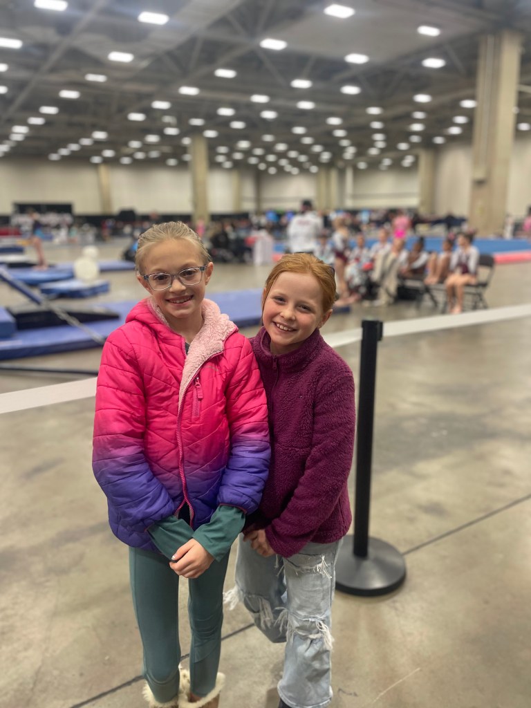 Her sweet, sweet friends drove all the way to downtown Dallas to come and support her. Scarlett is a phenomenal gymnast, and gave her a key chain with a bible verse for good luck! We really are so blessed with some incredible friends!