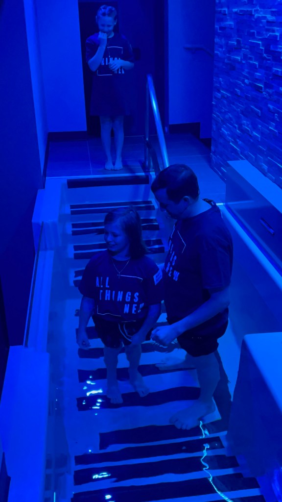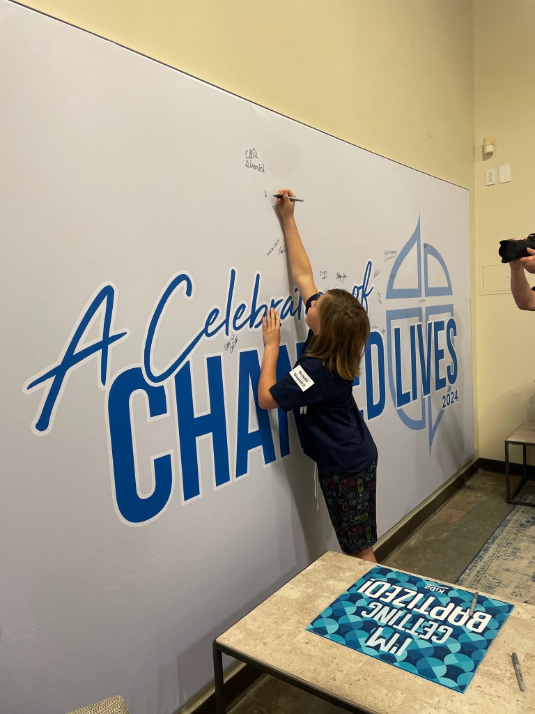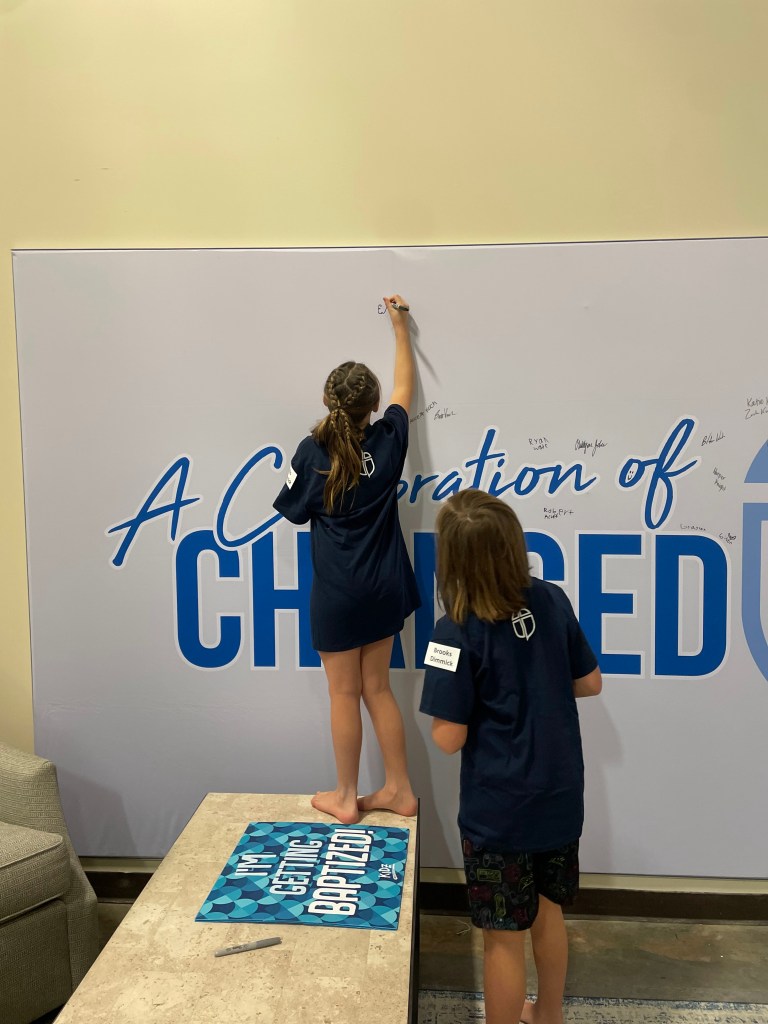 We had to get to the service a little early, and while we were waiting the kids got to sign the baptism wall back stage!