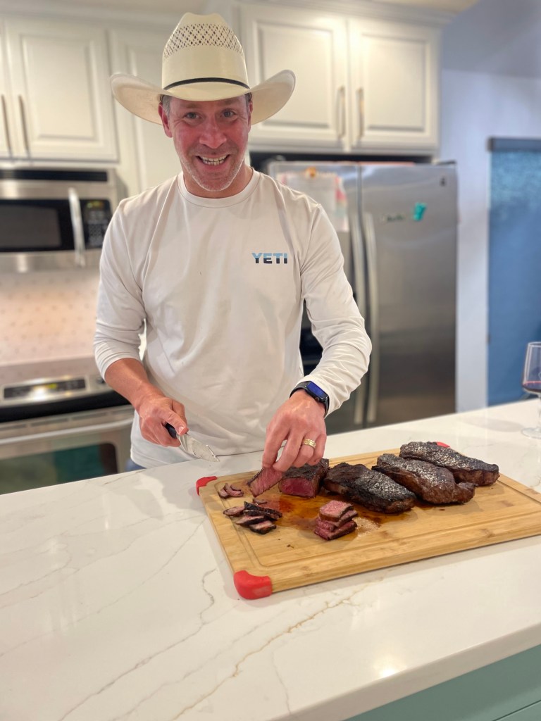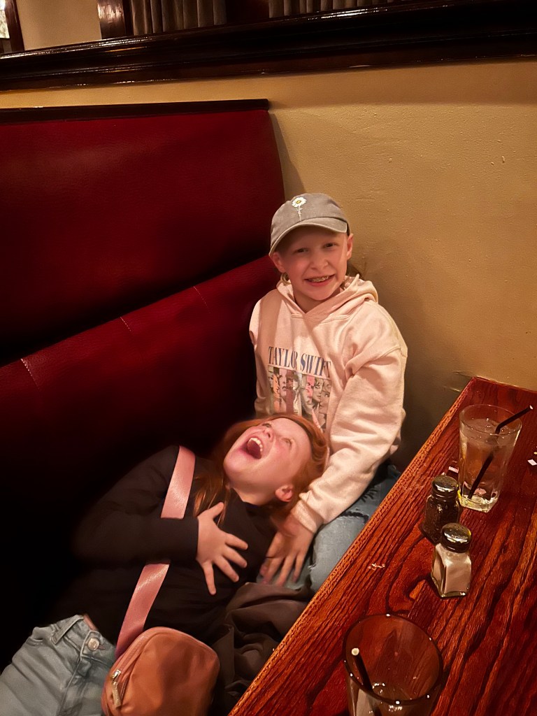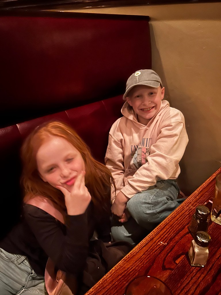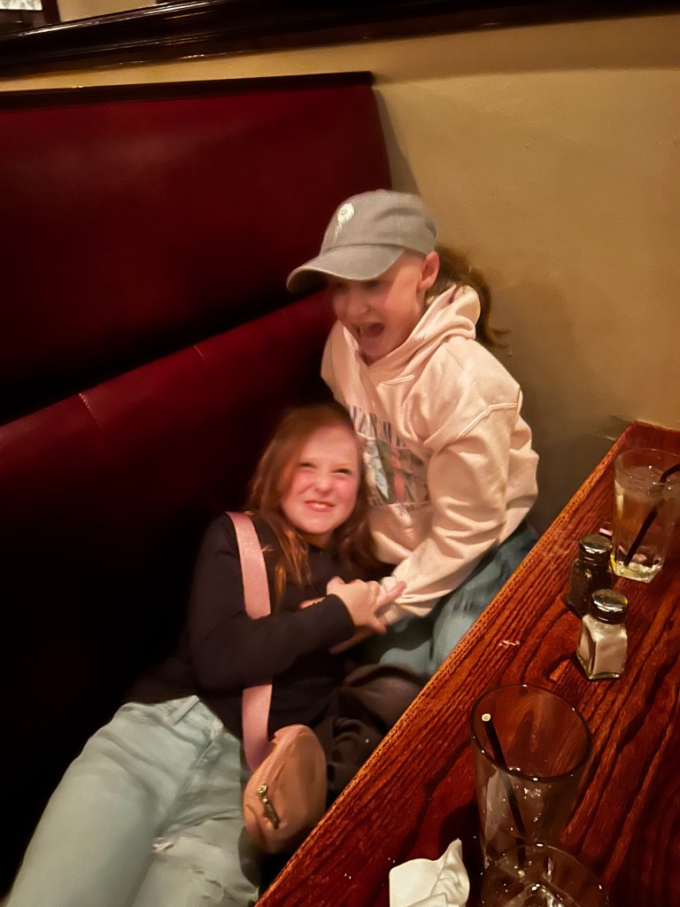 While the boys were at wrestling the girls were at a “fancy” steak dinner!