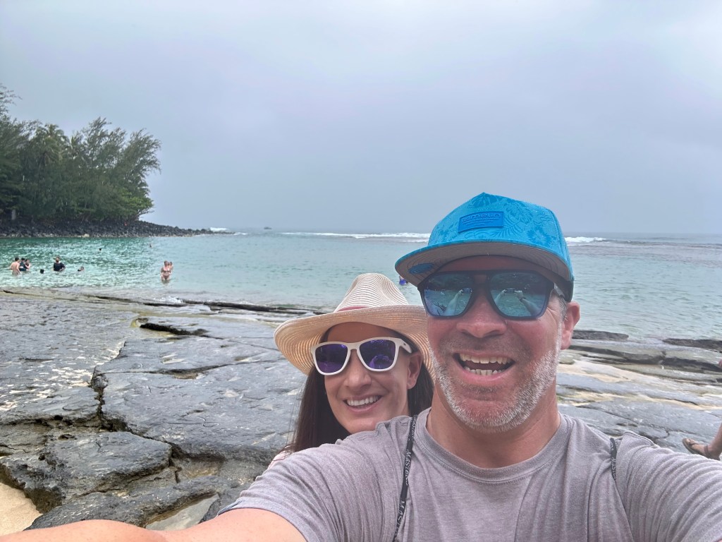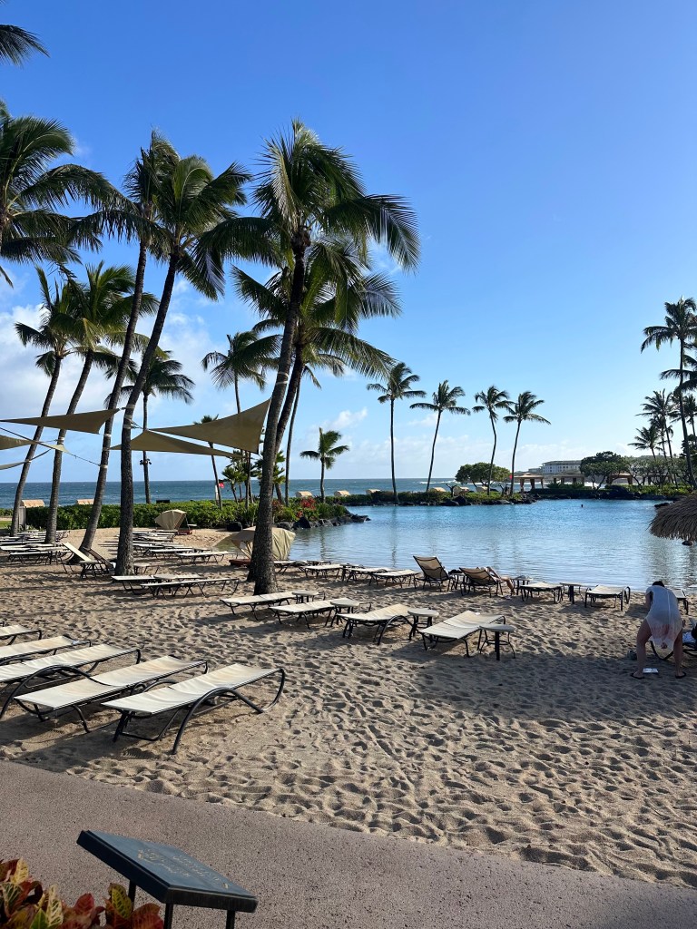 Right around the same time we switched over Ellis’ medication and things were pretty tough and unstable at home, we found out Adam qualified for his Summit Club trip for work. Not only is this a FREE trip, we also found out they were going to Kauai! As much as we’d been dying to go to Kauai, I thought there was no way in the world we’d be able to go and leave Ellis at home. My parents, Adam’s parents, and our sisters (Jeanne and Kelly) knew about this trip though, and convinced us we HAD to go. I will forever be grateful to them for this! I can’t tell you how badly we needed this trip! Praising the Lord Ellis’ new medication finally kicked in and things were starting to calm down at home too before we left! We dropped the kids off with Nancy before school on Tuesday, April 23 and headed to Kauai! We stayed at the Grand Hyatt Resort, with this beautiful salt water lagoon!