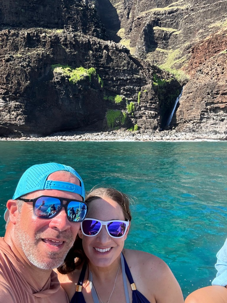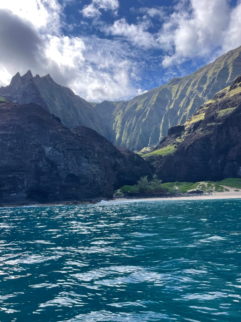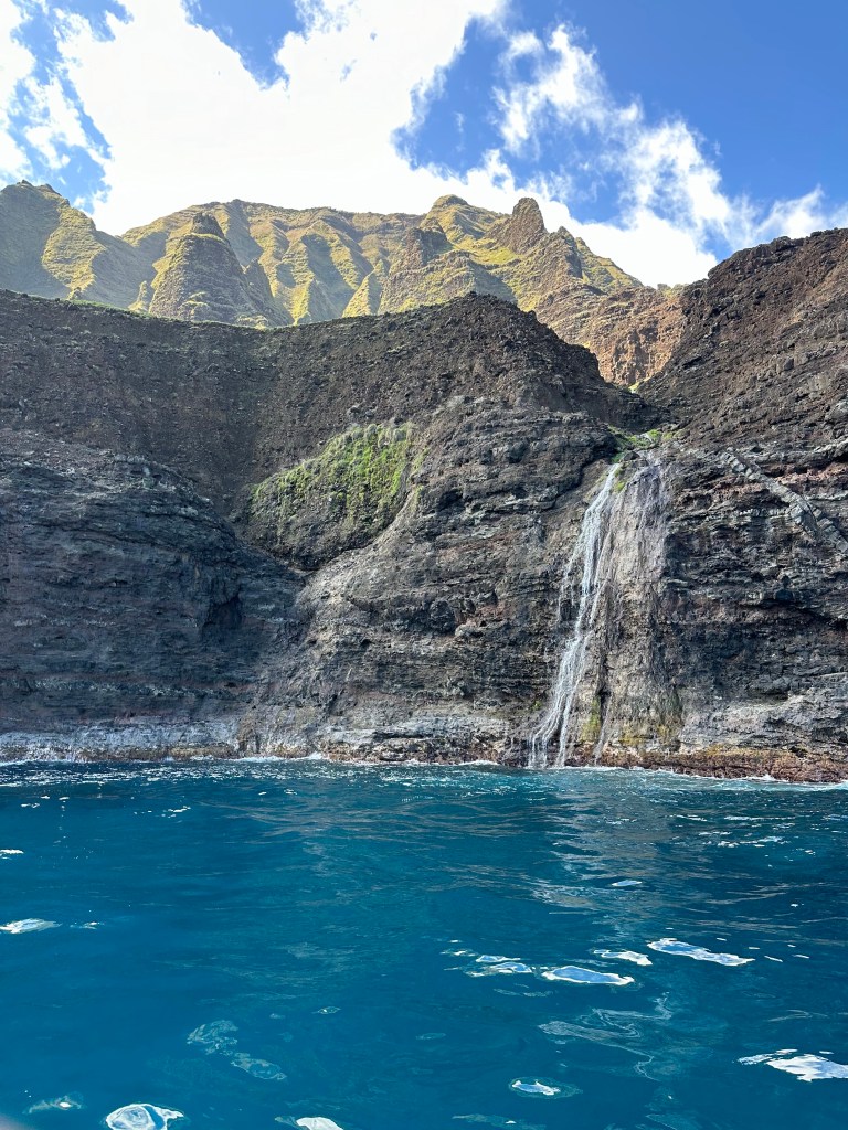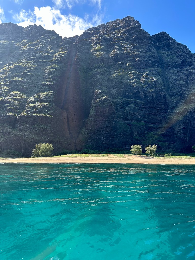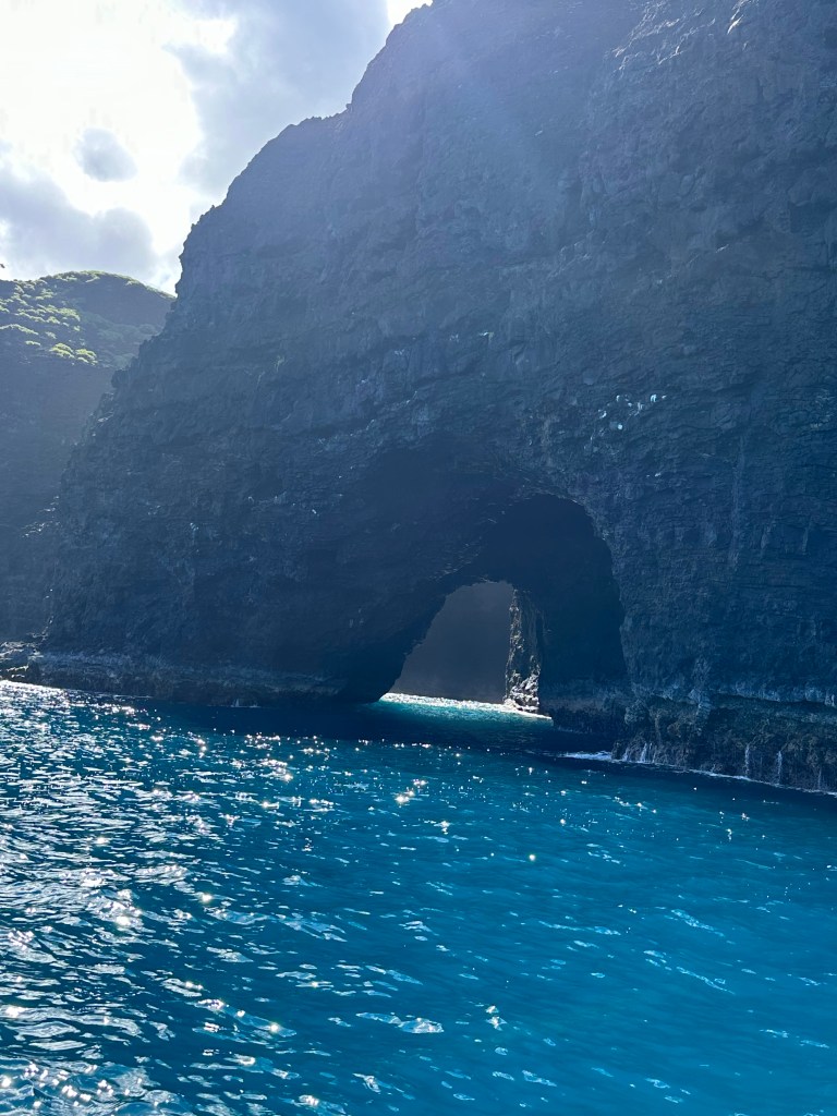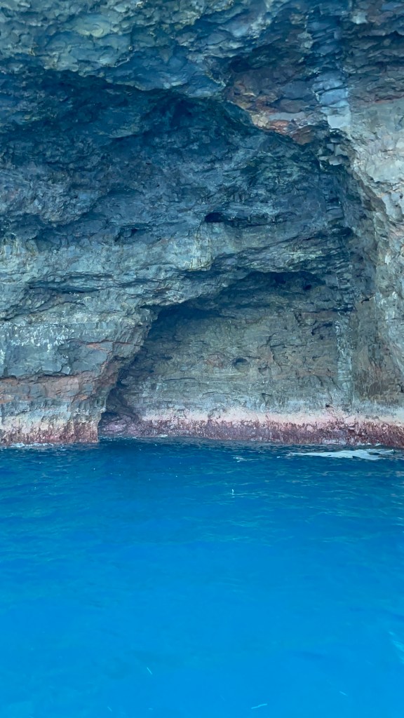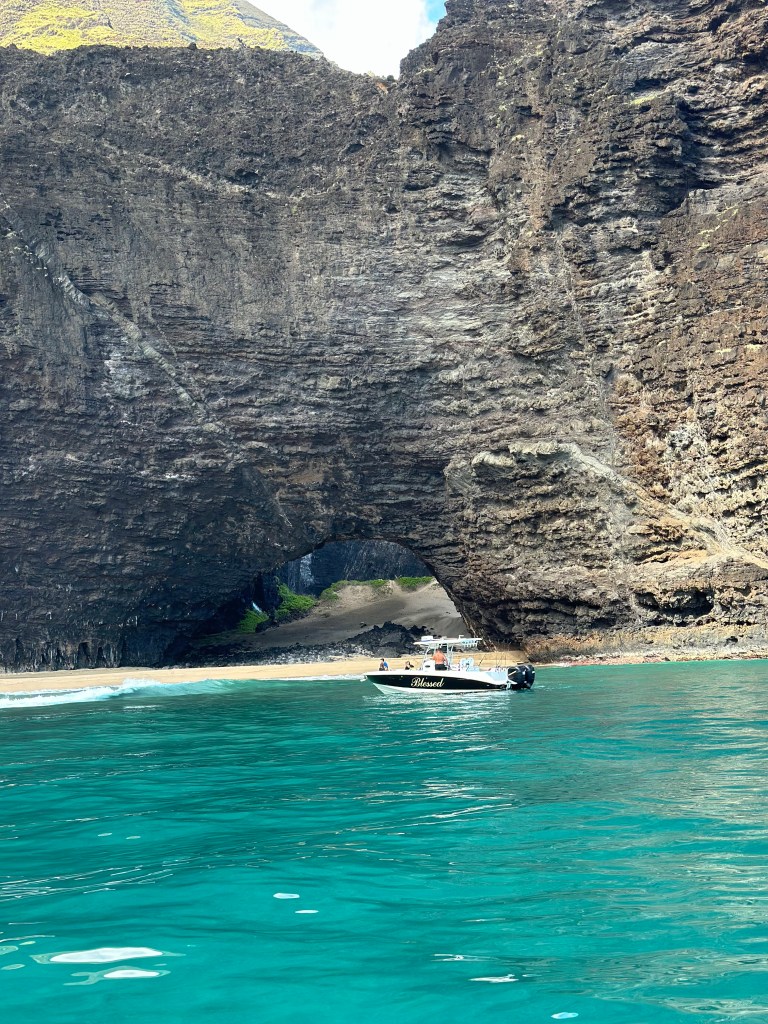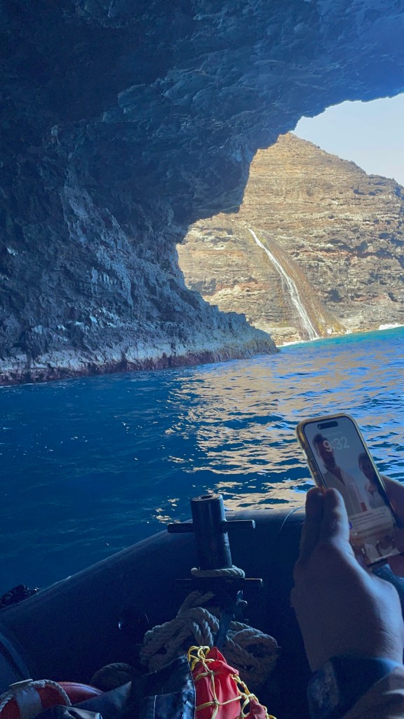 Our last morning we booked another excursion since our flight wasn’t until 9pm that evening! This was by far the coolest excursion I’ve ever been on, and the BEST way to see the beautiful Na’ Pali Coast. We Took this 10 person motor powered raft to explore the coast…