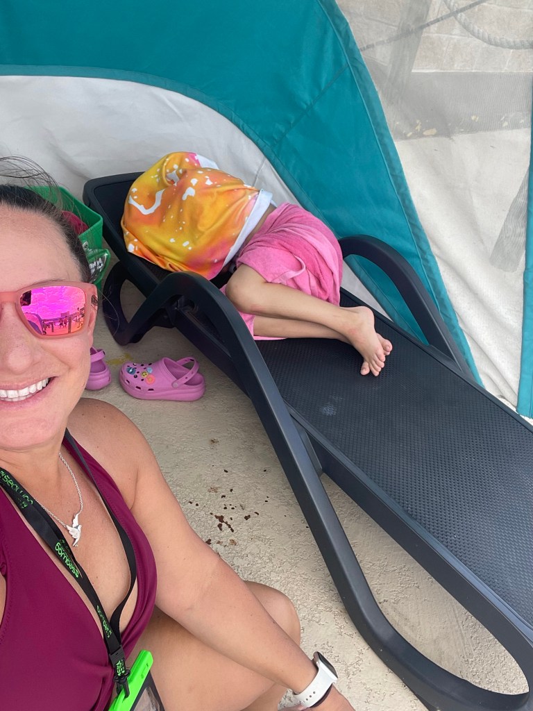 Then passed out in the cabana the rest of the day while the boys had a ball! Poor thing, I think the 16 hours of gym finally caught up to her.