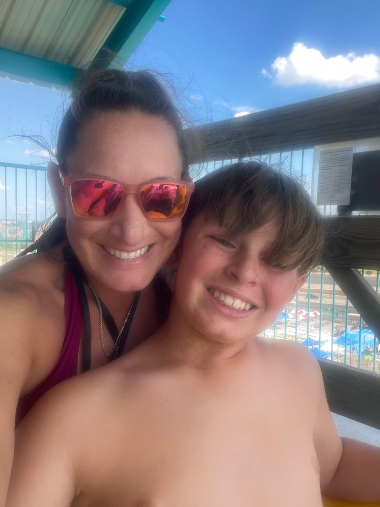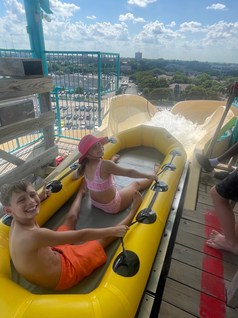Brooks got tickets to a Rangers game with his Canes team to kick off their “World Series” tournament. Since the Rangers game was at night in Arlington, we decided to utilize our six flags season passes and go the water park (associated with it) during the day!