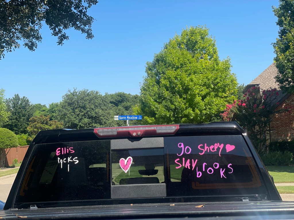 Ellis helped me decorate Daddy’s truck….it says, “Ellis rocks, go Shepy, and slay Brooks!