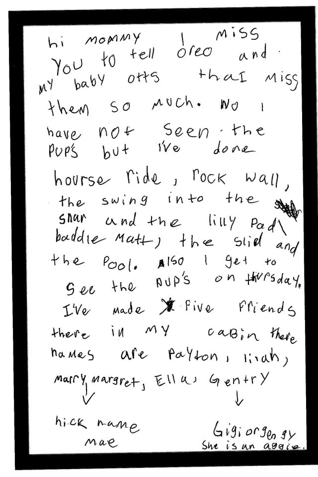 I live for these letters we get from them while they’re at camp! This first letter is from Ellis, and I’m not surprised at all how many friends she made!