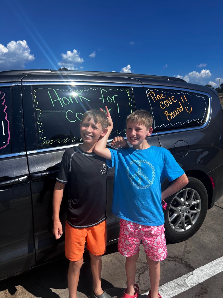 Shep was the first one I picked up from camp and I really wish I would have recorded him running to me and jumping on top of me to give me a hug and not letting go! He was trying so hard to fight back his tears. He said he had fun but missed us and was ready to come home. I was fighting back tears too and didn’t think to take a pic with him and his counselor. The counselors pull each camper to the side with their parents and present them with “Character Quality” medallions or CQ’s. They are always so spot on with the characteristics they choose for the kids, which lets me know they really take the time to get to know them and pour into them! Shep’s character qualities were patient, tenacious, and tolerant. I’m guessing the patient and tolerant had to do with helping Conner when he had his meltdowns, lol, and the tenacious had to do with his endless energy!