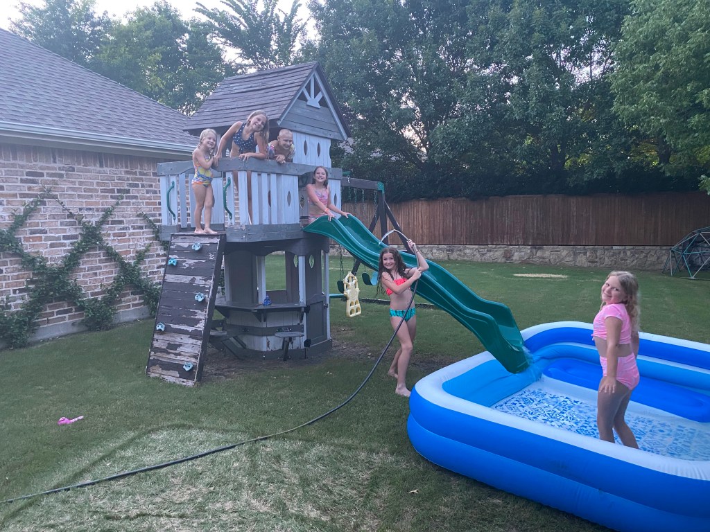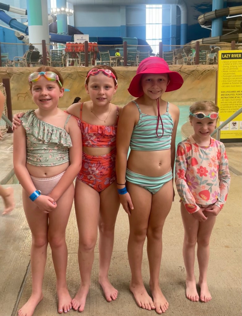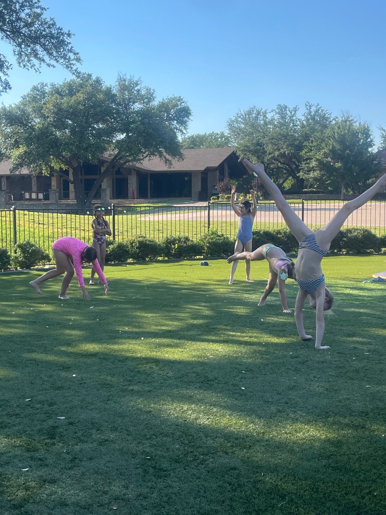 Ellis has almost doubled her hours for gym this summer and is going M-Th from 12:30-4:30. She went from 9 hours a week to 16! She’s definitely missing her friends, so I took them for an evening swim after gym one day!