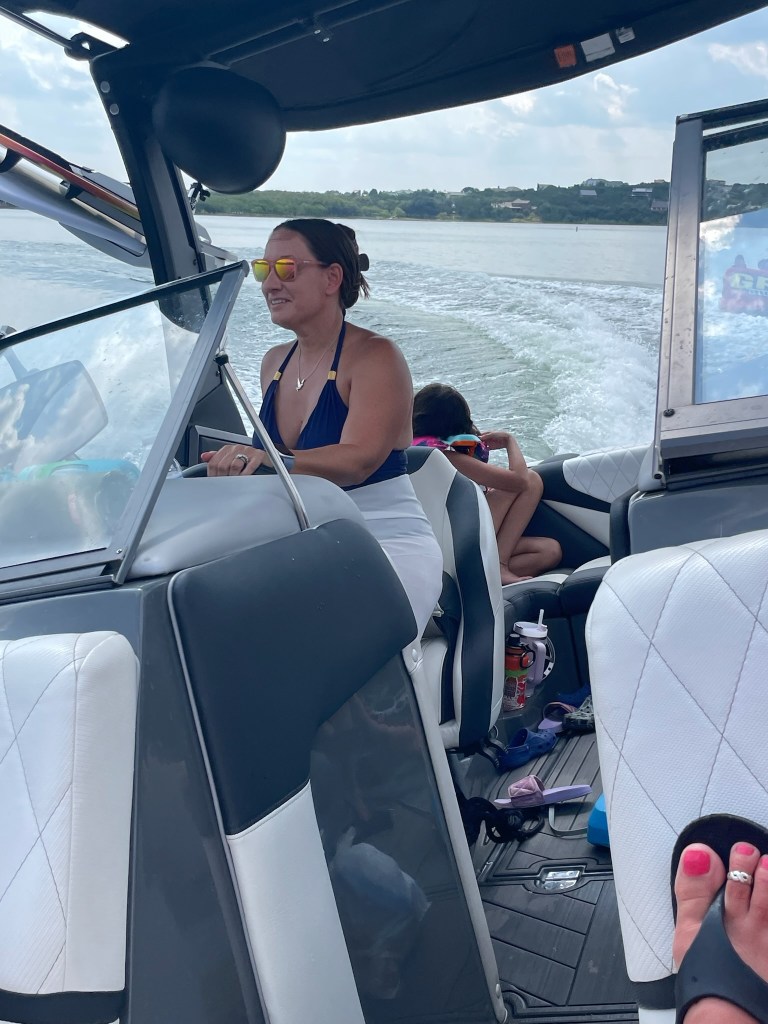 So before Adam left to go back to McKinney he had me practice driving and docking the boat all by myself, so I could take my friends out! I cannot believe he trusted me, but I have to say, I did an awesome job and had lots of fun!