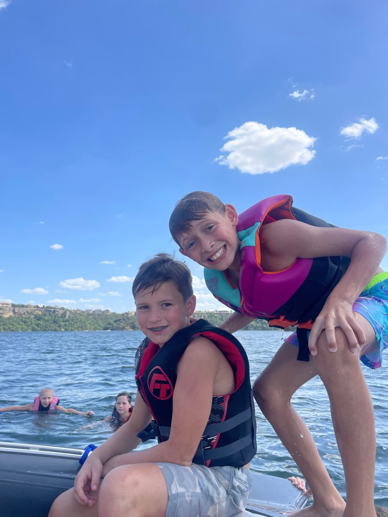 Ellis and Adam headed back to McKinney for work and gymnastics and the boys and I stayed at the lake. Some friends of ours joined us after a couple of days– the Smith’s and the Tendorf’s!