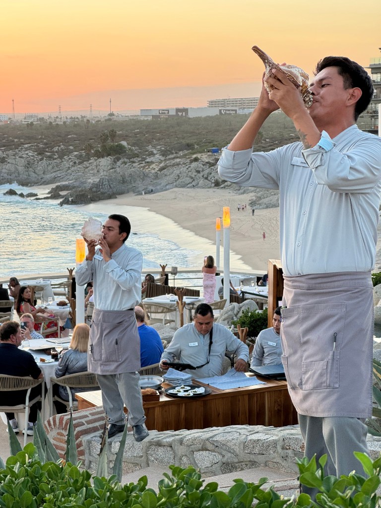 Just before the sun actually sets all the waiters stop what they’re doing and blow on these conches. It was so calming and beautiful!