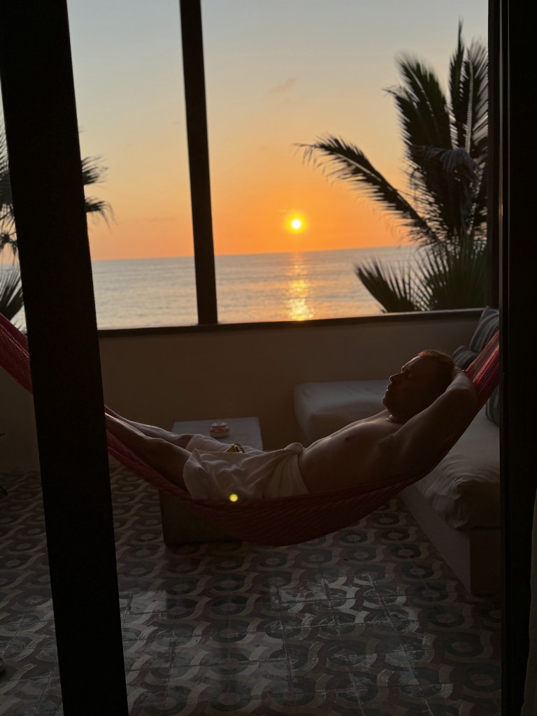 After my relaxing morning massage, Adam decided to make another splurge and booked us a room at this boutique hotel his friend HIGHLY recommended and insisted we visit. It was in the town of Todos Santos (about an hour north of Cabo). We took a cab to the remote Hotel San Cristobal– a 32 room adults only secluded resort that was started by a renowned chef! This hotel was worth every single penny!