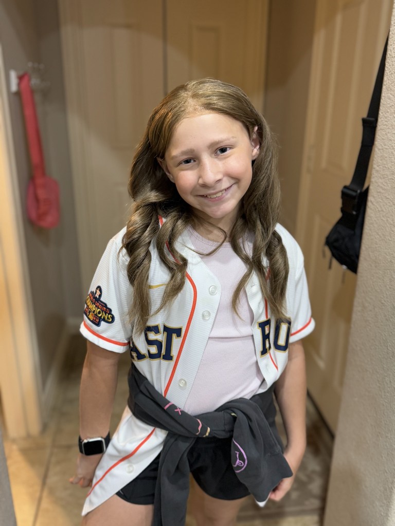 The “fit” she chose for picture day! So happy she at least let me curl her hair! Had to get a pic before it got all messed up, lol