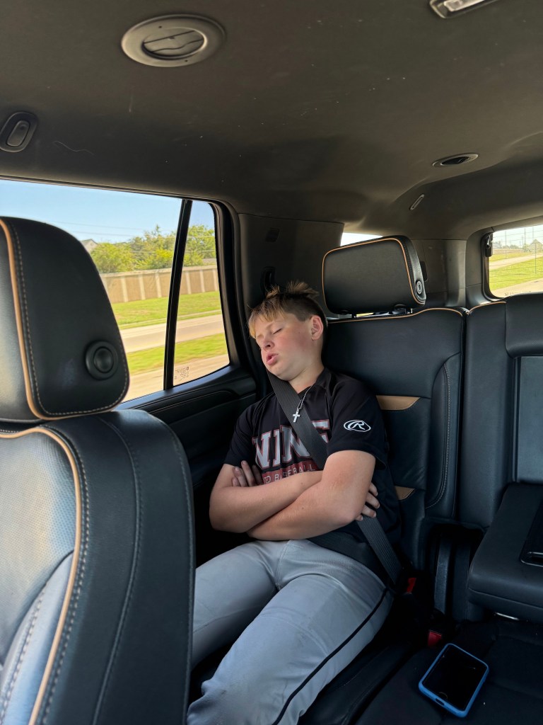 This kid NEVER falls asleep in the car. Those 7am arrival times for games an hour away are exhausting!