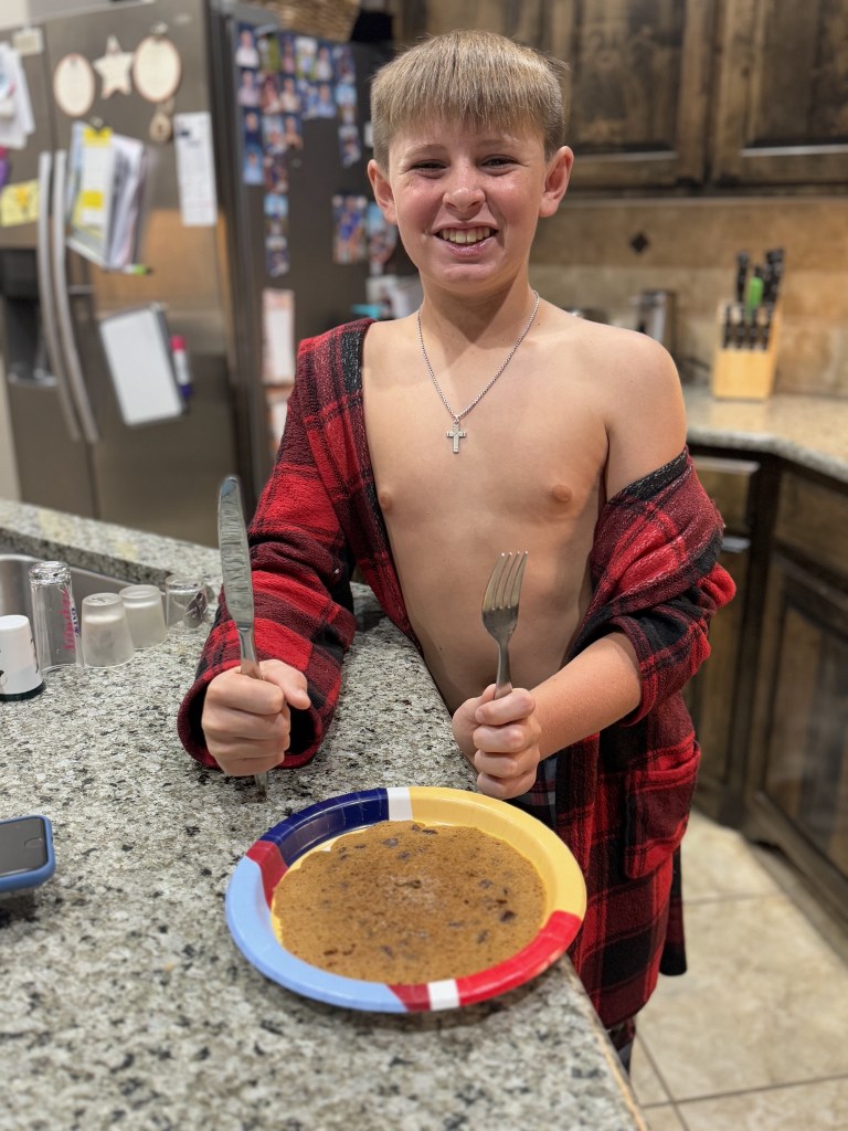 Adam grilled some delicious steaks and sweet Brooks made me this homemade chocolate chip cookie! He looked up the recipe and made this all on his own!