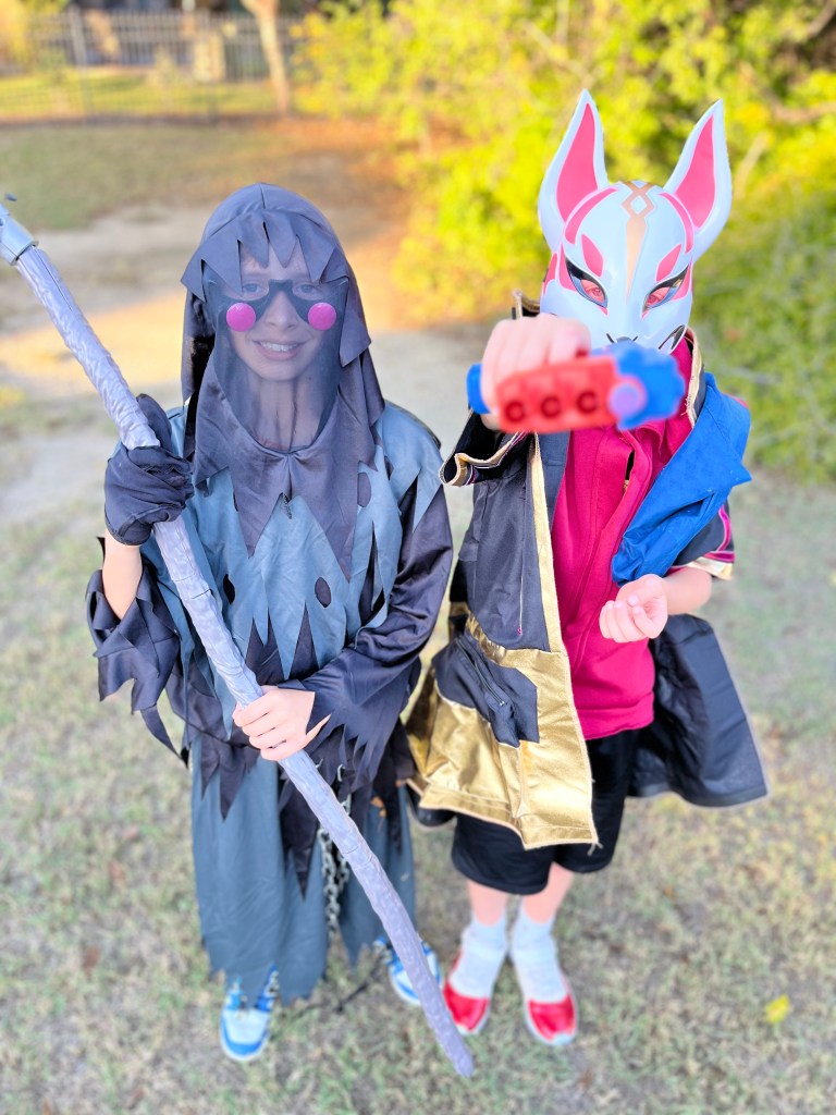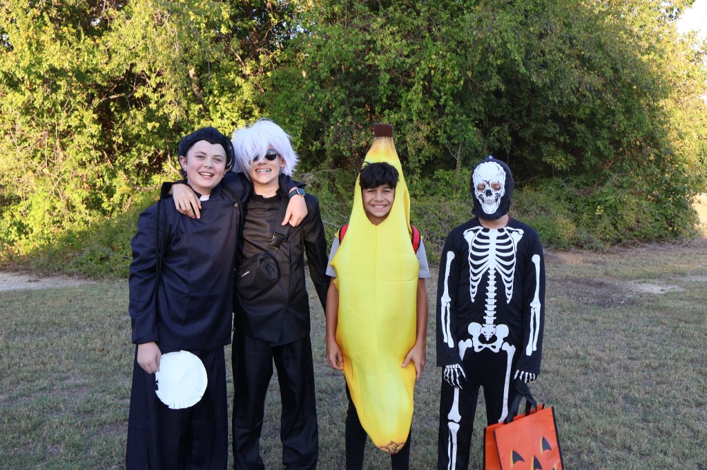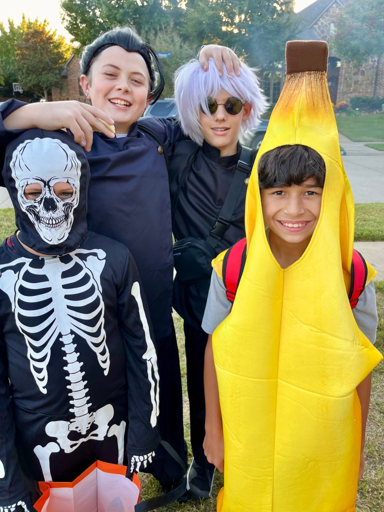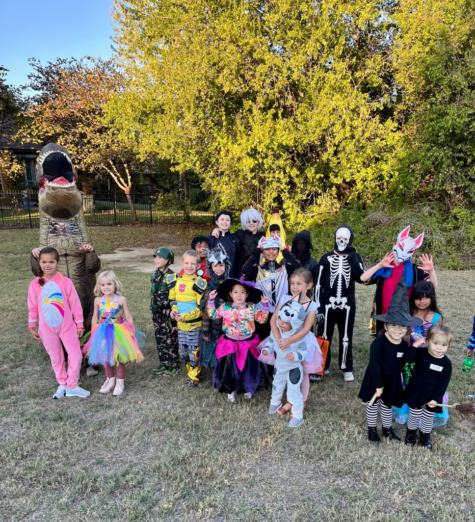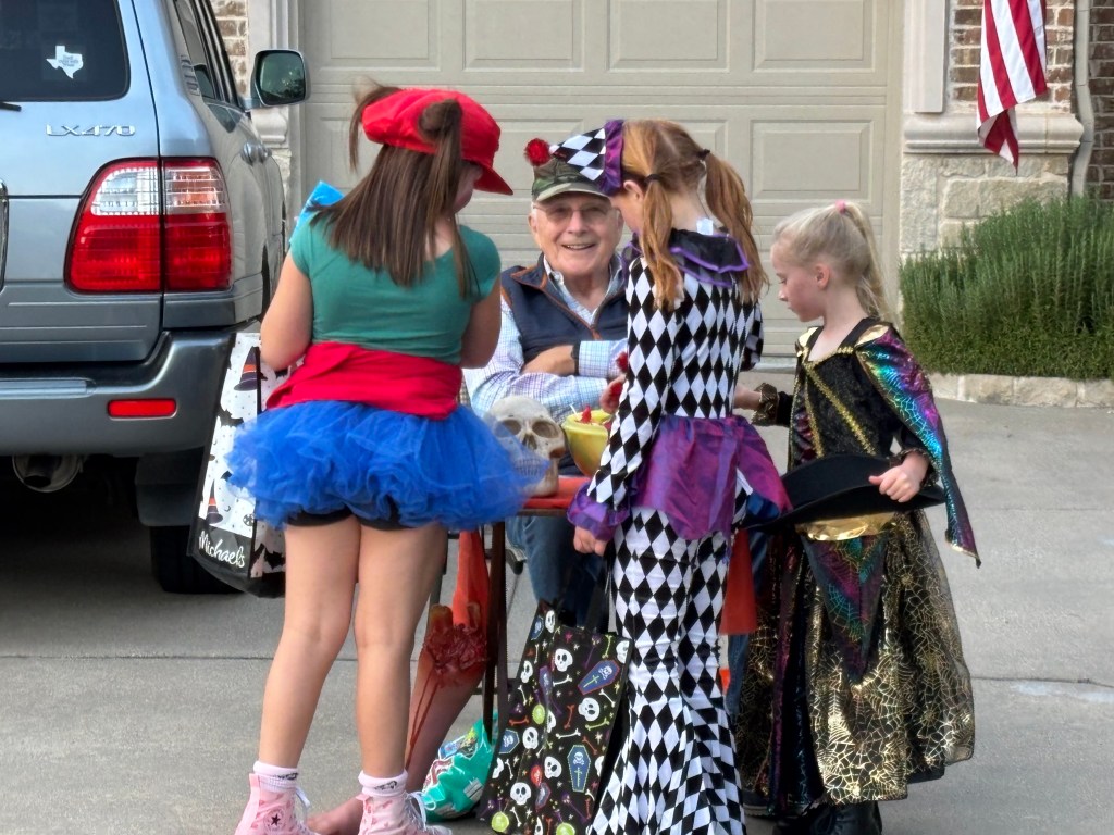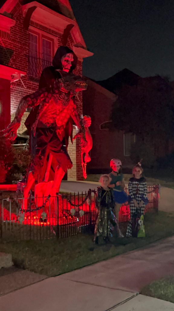 We had fun trick-or-treating with ur friend in the neighborhood!