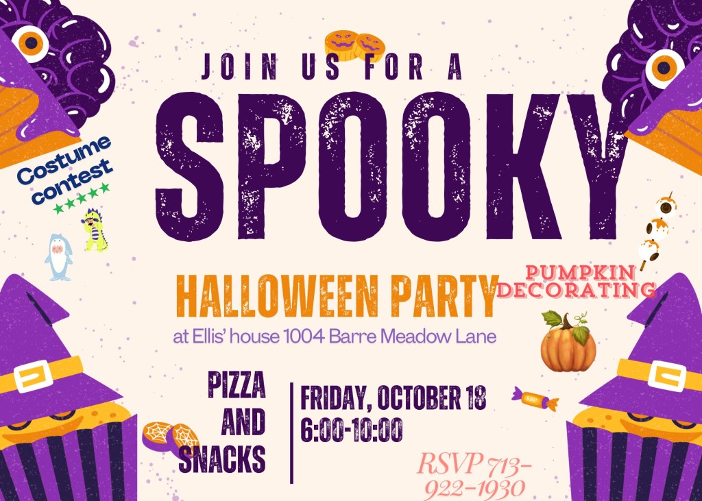 When your daughter begs you to let her host a Halloween party for her and all of her friends, and then creates this super cute invitation all on her own, how can you say no to that?