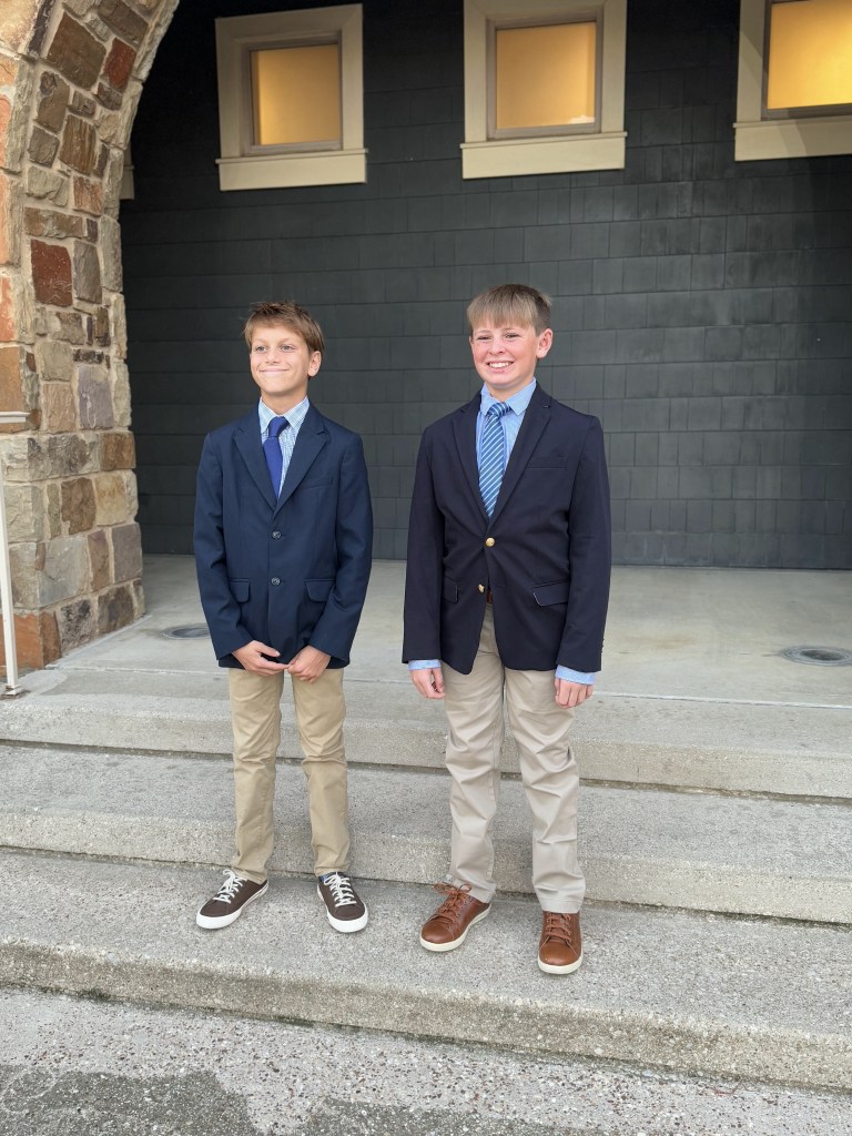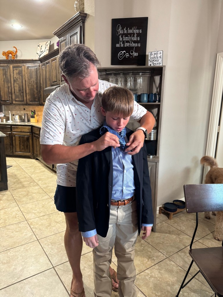 Brooks is doing the Junior Cotillion program at the Country Club and has to wear a sports coat and tie! Daddy had to show him the ropes with the tie!