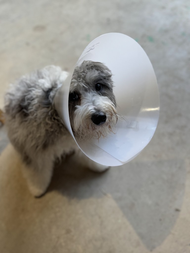 Poor Oreo had to wear the cone of shame for a whole week after he got neutered.