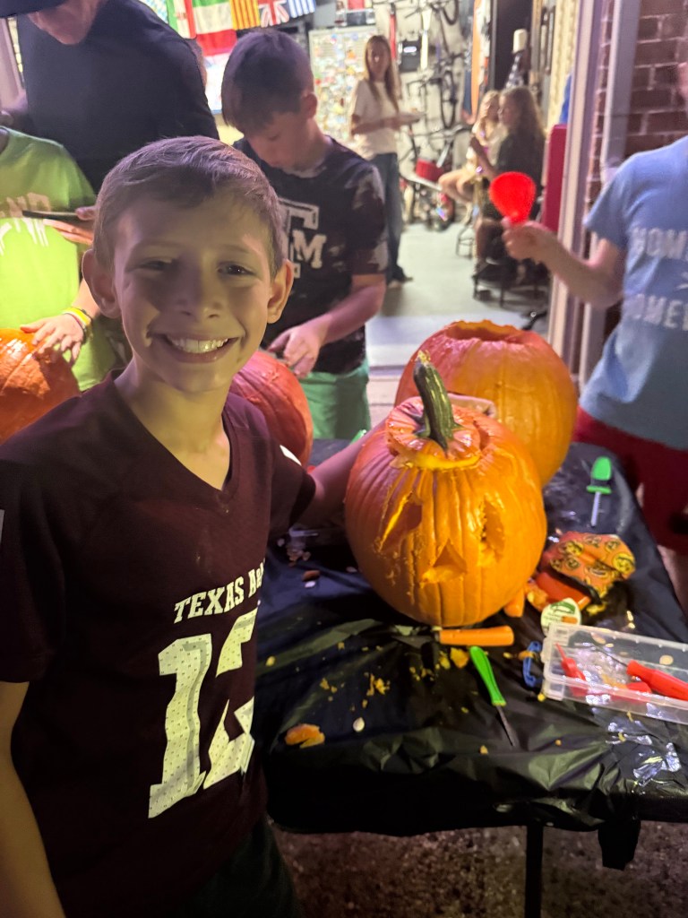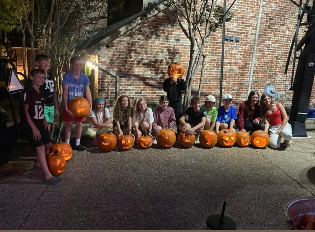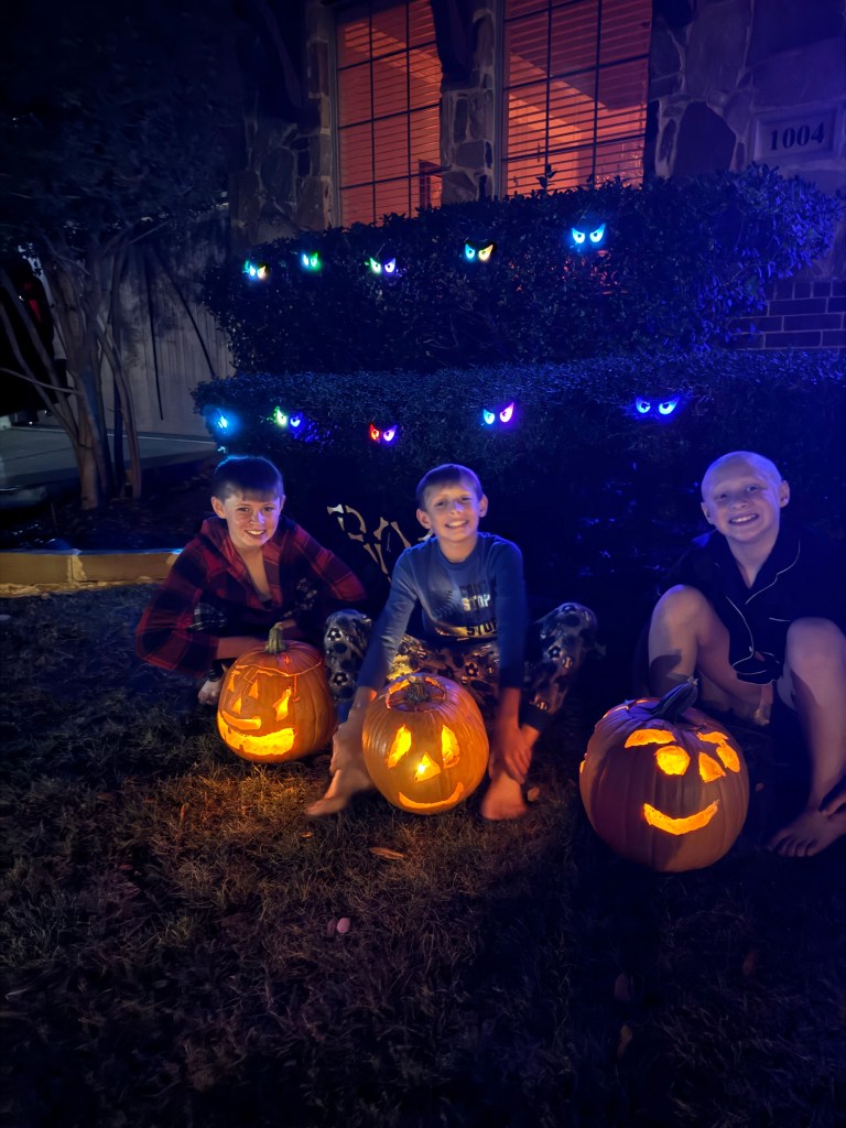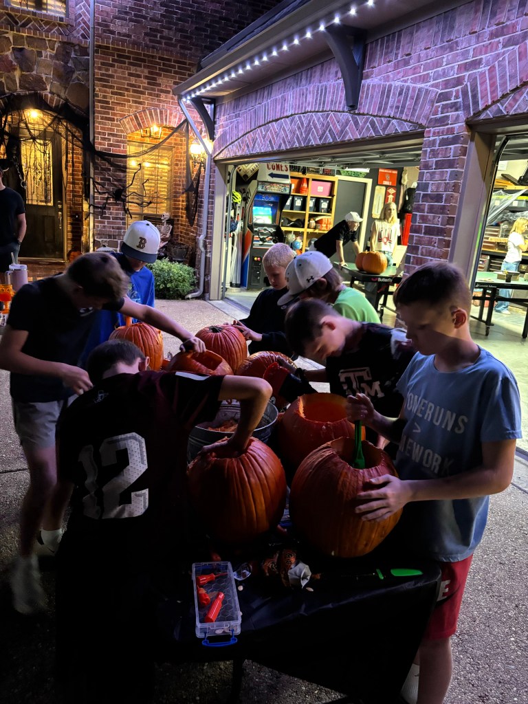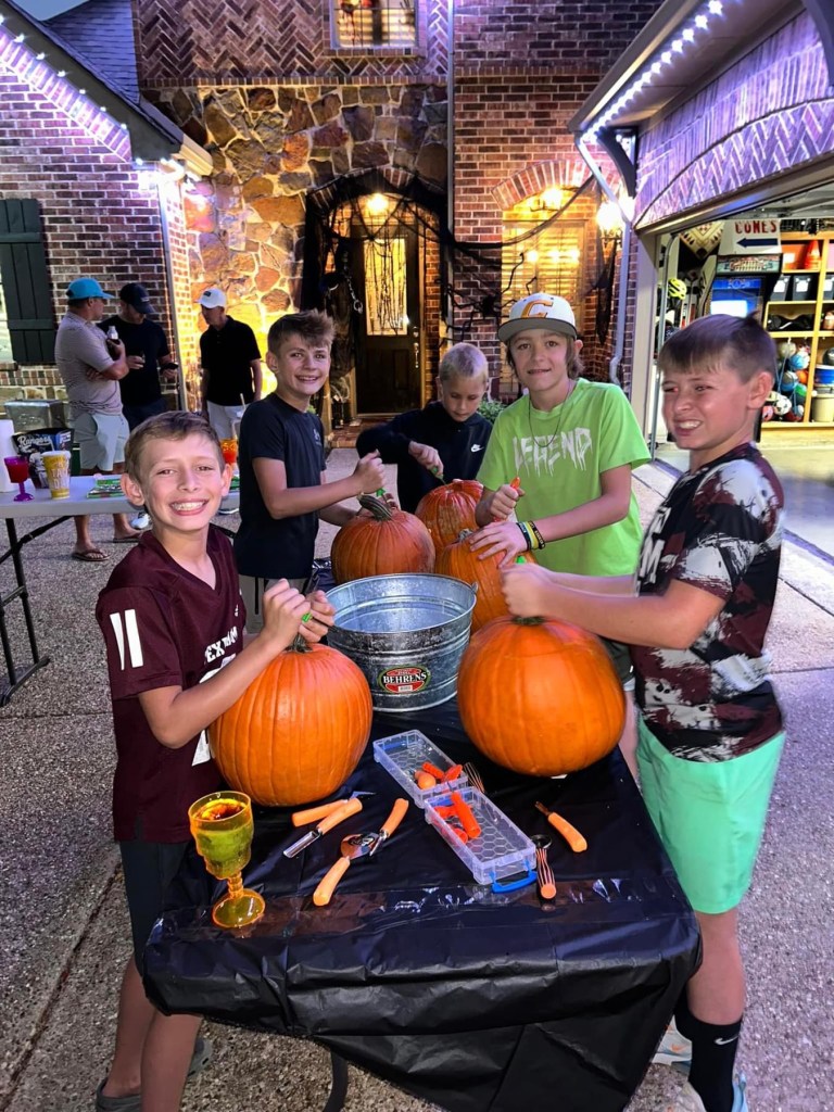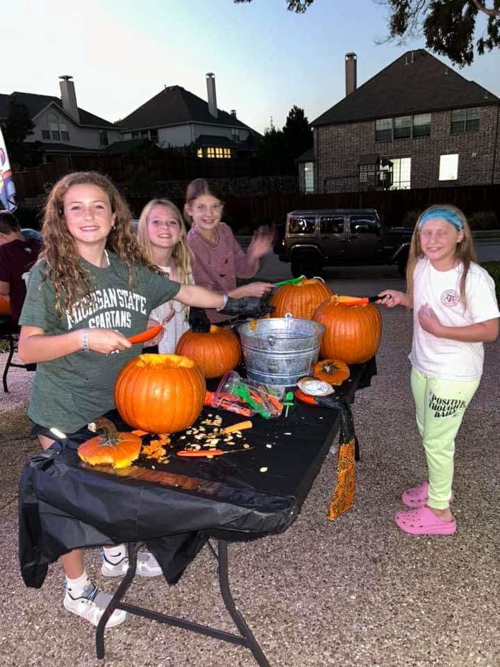 After the games Adam took the kids to a neighbors house to carve pumpkins for their first time ever!