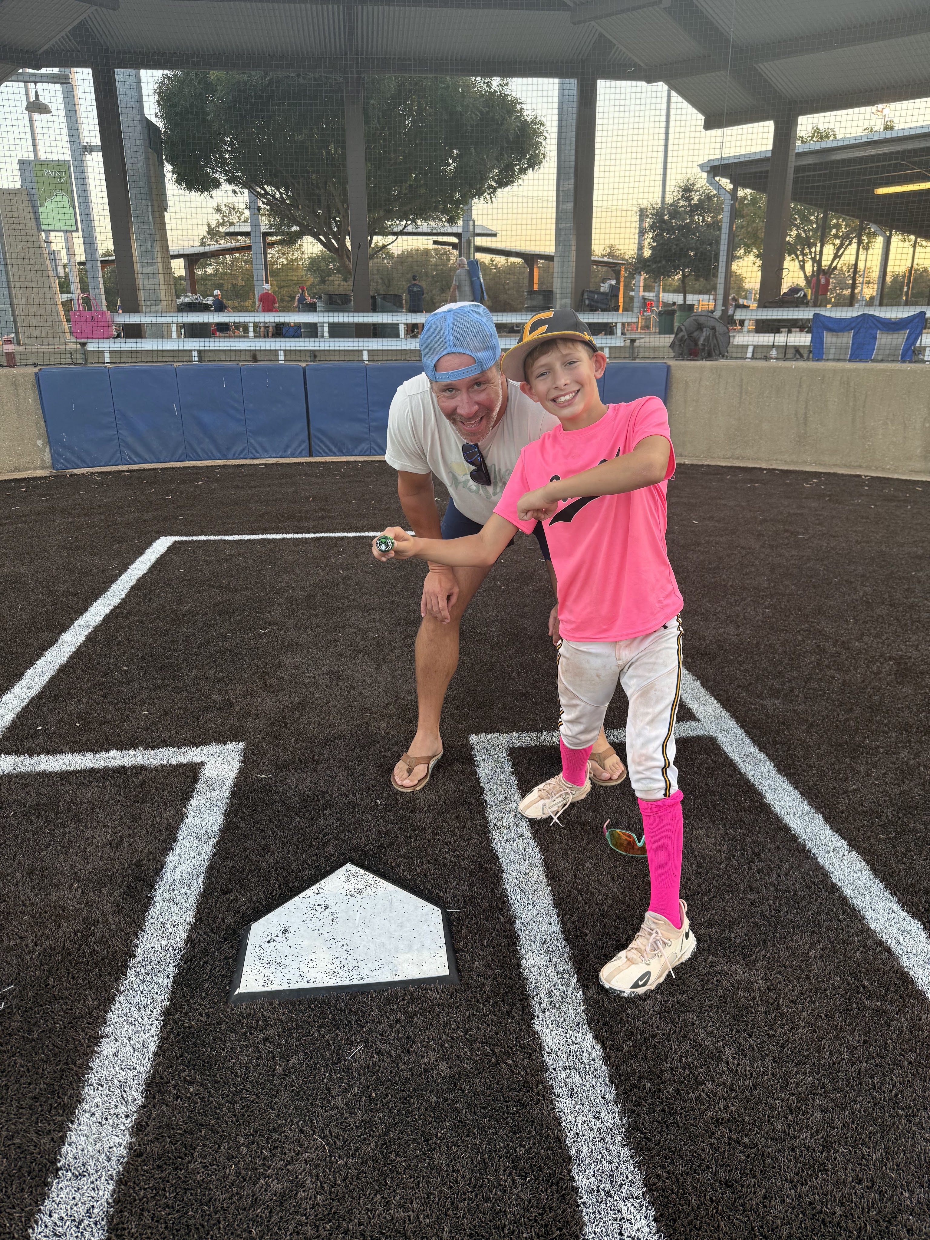 The next day Brooks got to help out in a tournament with his old rec team, The Pirates. He was in heaven getting to catch again!