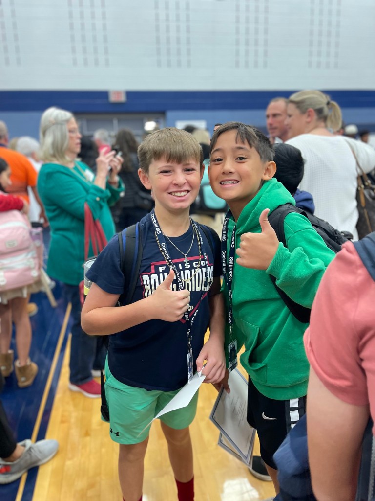 Our friends sitting next to us yelled “BROOOOOOKS” when they called his name, and after school Brooks asked me why they were boo’ing him, lol…