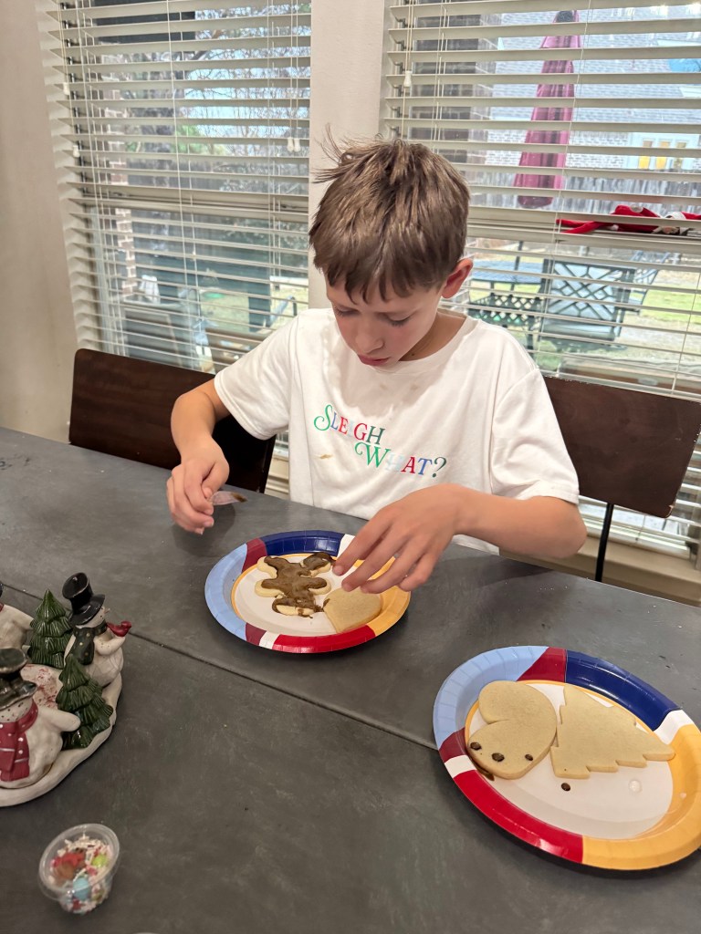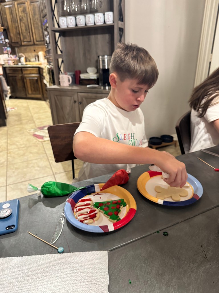 Christmas Eve morning we started with our yearly tradition of decorating cookies for Santa!