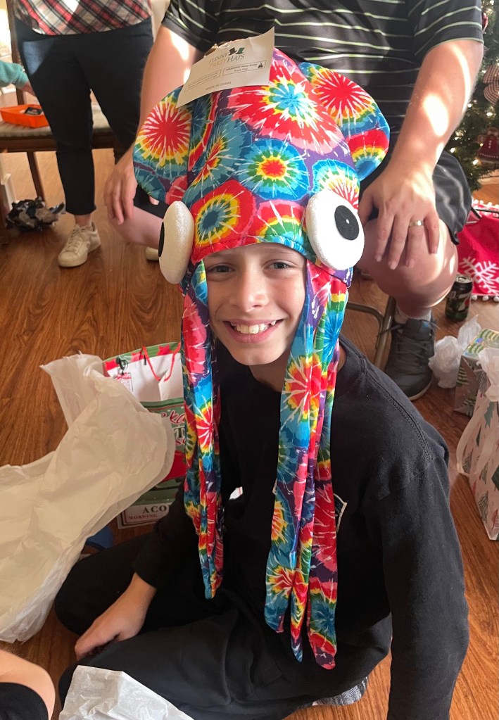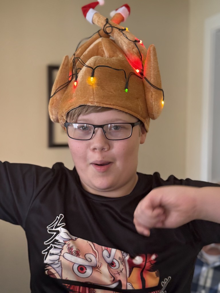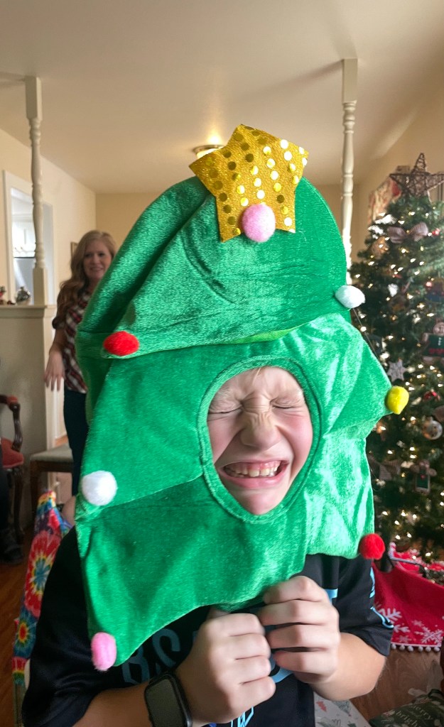 Lesley came up with this hilarious white elephant silly hat gift exchange instead of our usual secret Santa exchange, and it was definitely a hit! The princess crown was perfect for Brooks, lol