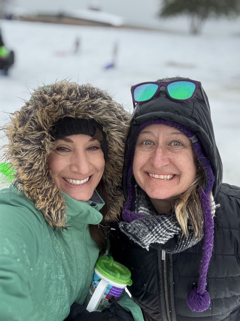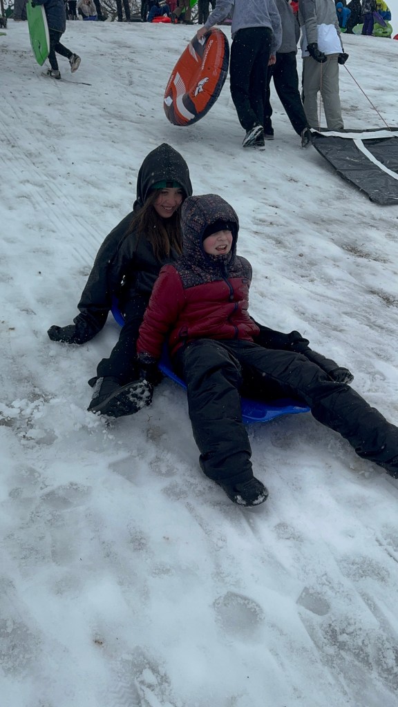 Right after this picture we were taken out by a bunch of middle school girls sledding down the hill, lol