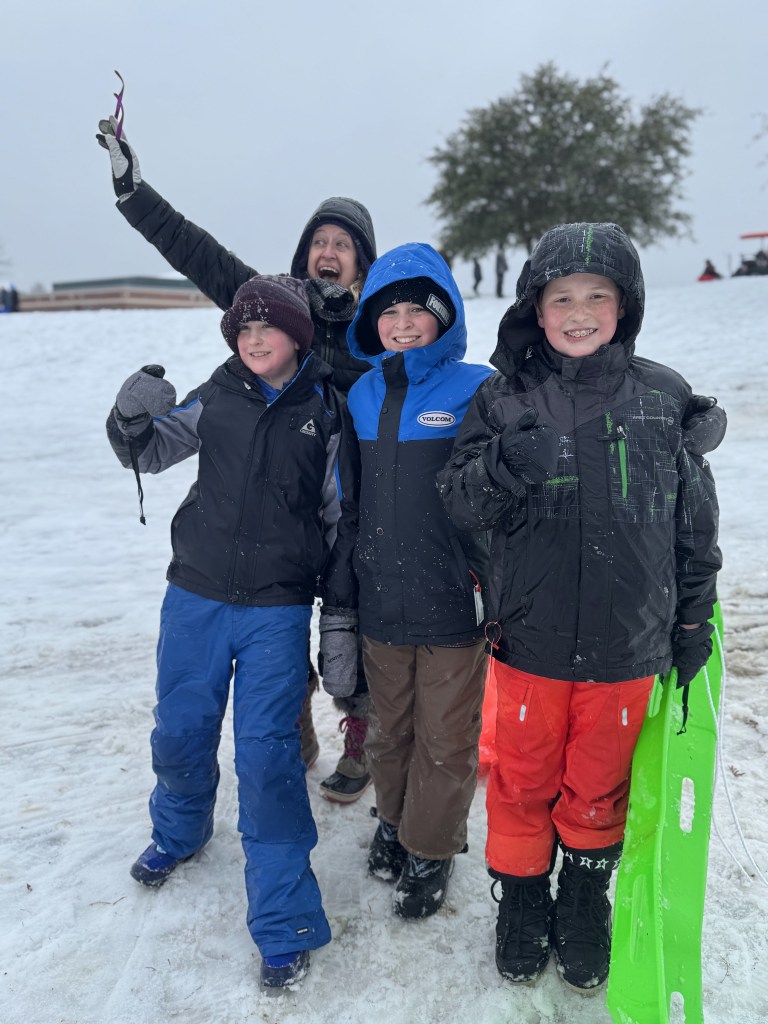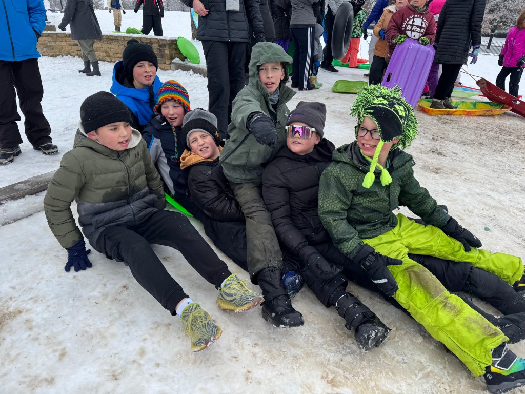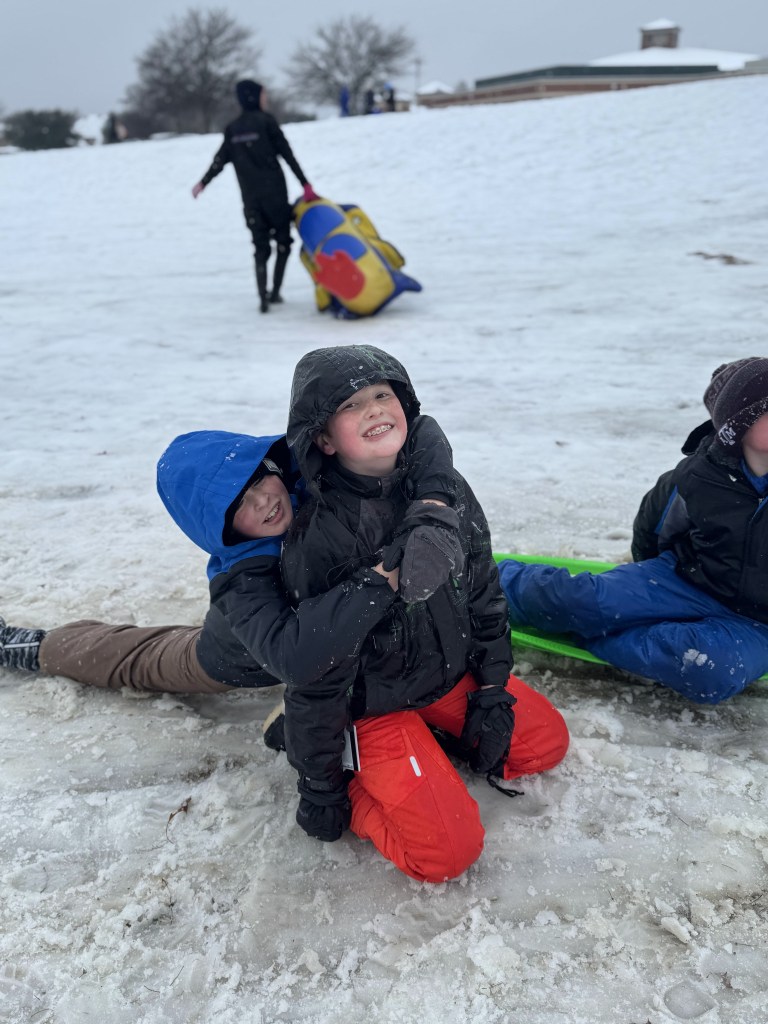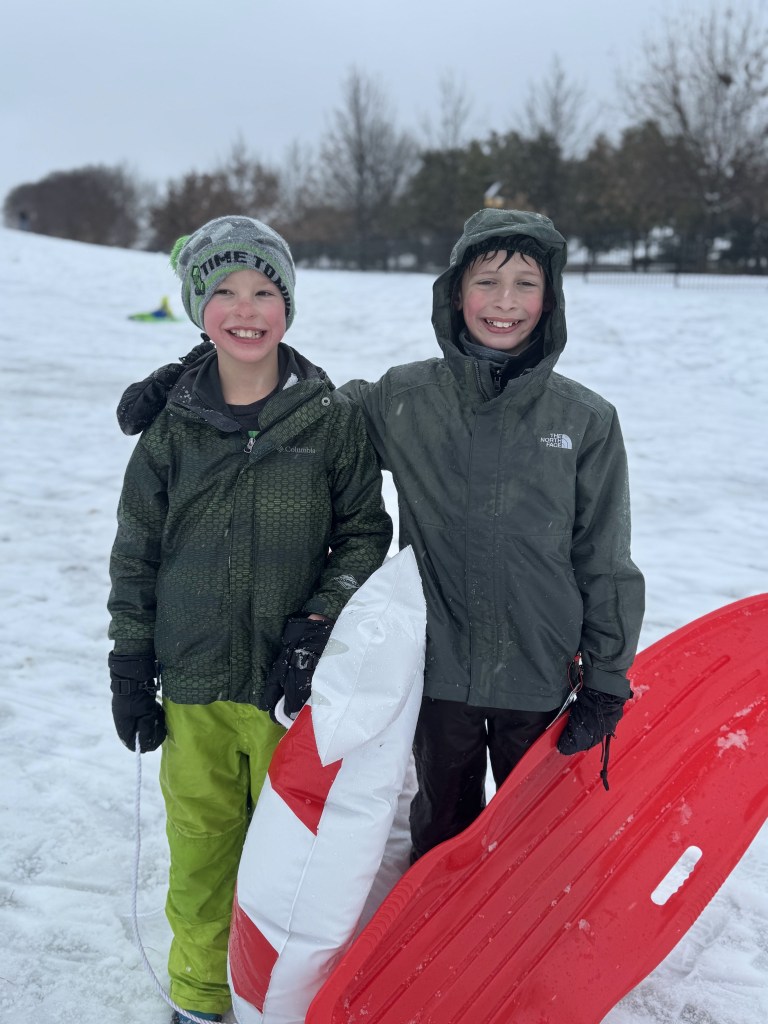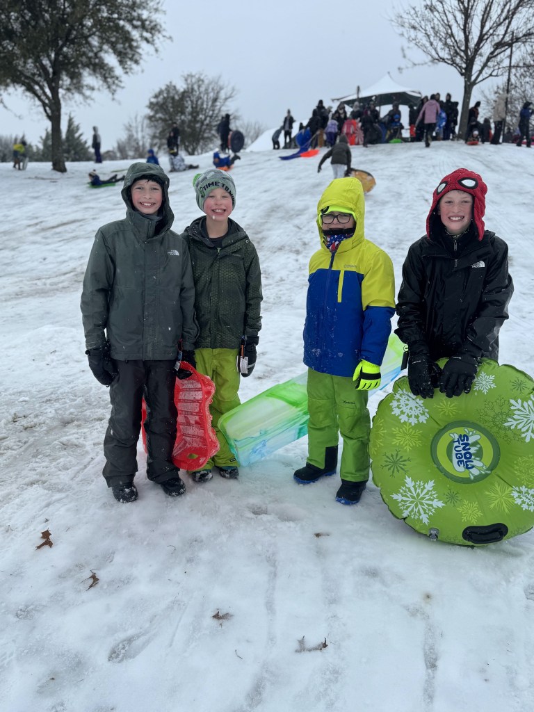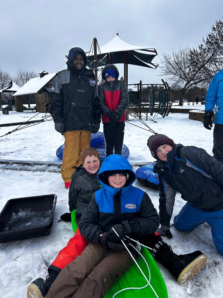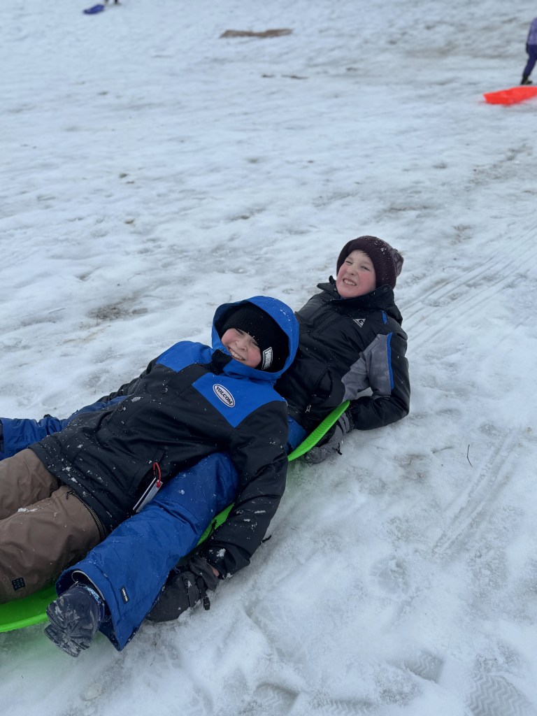 The sun came out and the snow quickly turned into a slushy mud pit, but that didn’t stop the boys from having a blast!