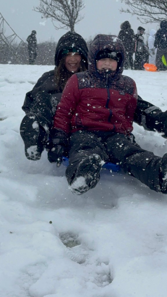 Brooks attempting to snowboard on the sled Santa was so smart to bring them this year for Christmas! I promise he wasn’t hurt after his wipeout in the end…