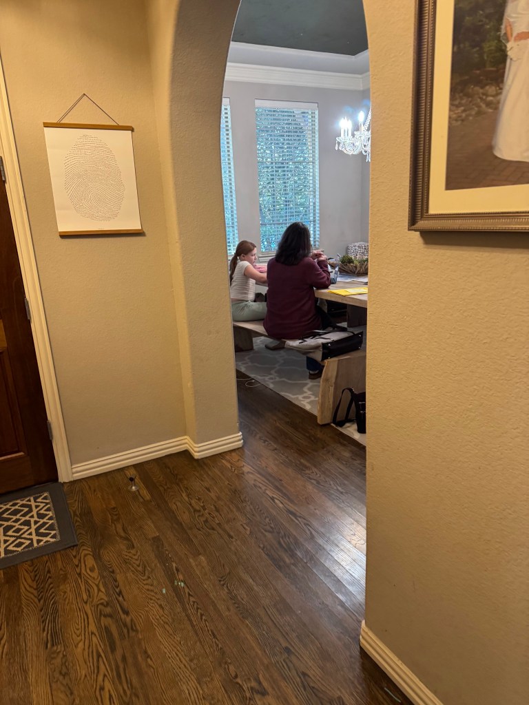 This is where Ellis meets with her teacher, Mrs. Wilson, twice a week for two hours at a time (in our dining room), usually from 3:30-5:30. This opportunity and resource has been such a HUGE blessing for her. Although she misses her friends, this is the least disruptive path for her right now and keeps her on track with her school work. Mrs. Wilson also sends her a checklist every week on her school computer with lots of classwork for her to do on her own. I seriously cannot express enough what a blessing this truly is and how grateful we are for the schools support.