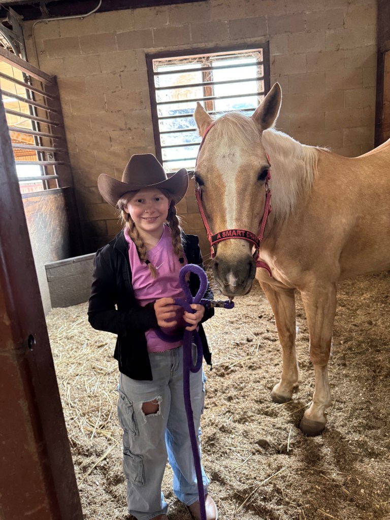Ellis also decided she wanted to take Western Horseback riding lessons! I couldn’t think of two more perfect extra curricular activities for her. Music and animals! Two wonderful outlets for anxiety, and right up her alley! We found a farm called Buckley Farms about 30 minutes from our house, in Anna. Ellis fell in love immediately just like I knew she would!