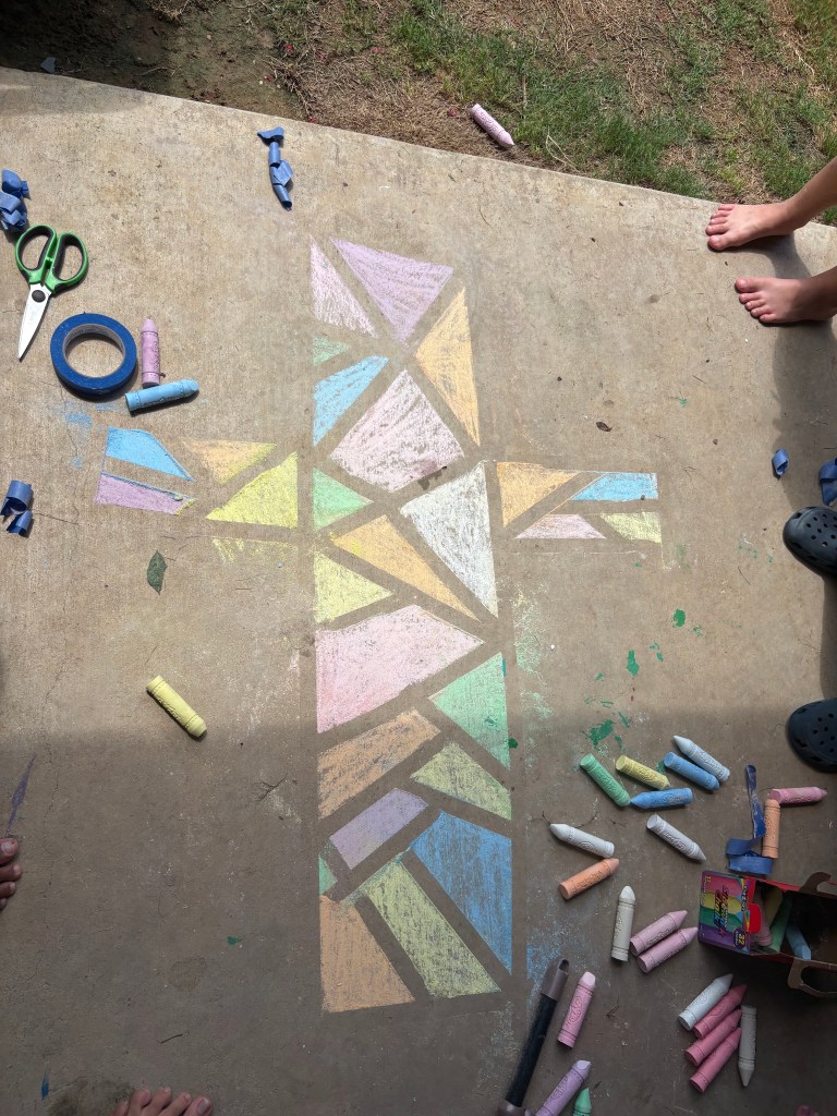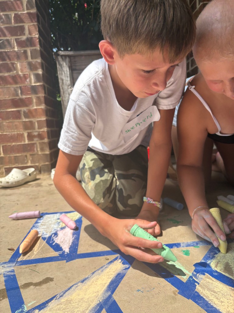 This cutie is apparently allergic to chalk, so she stayed inside and made bracelets while the others were outside