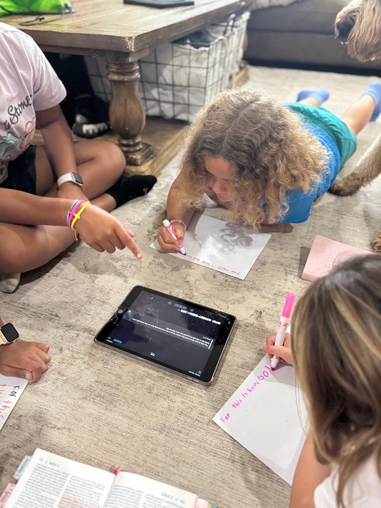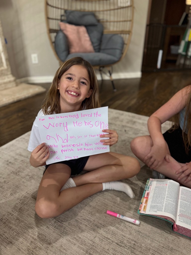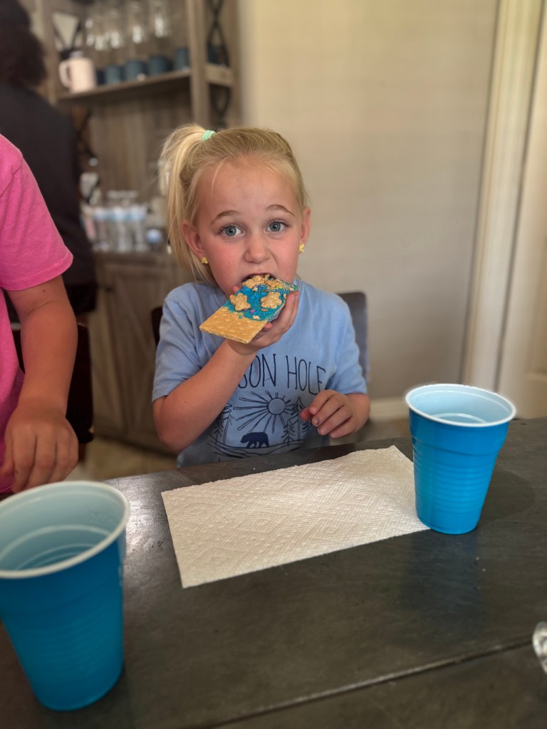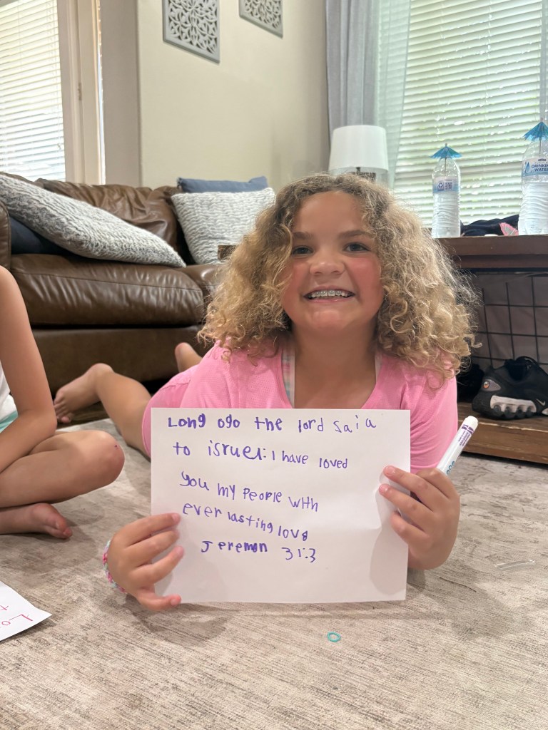 Got back from the lake and Ellis jumped right into the first day of “her” neighborhood Bible Camp!