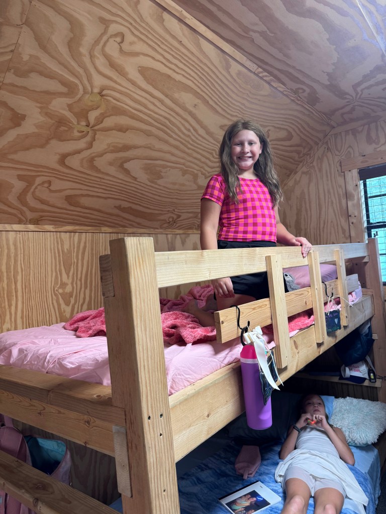 From the lake straight to camp! I took the kids while Adam stayed back and cleaned up the lake house and put the boat back in storage. Ellis was super nervous the entire drive there and it didn’t help that it was pouring down rain at drop off. I was so afraid she wouldn’t stay, but as soon as she saw her room she was excited!