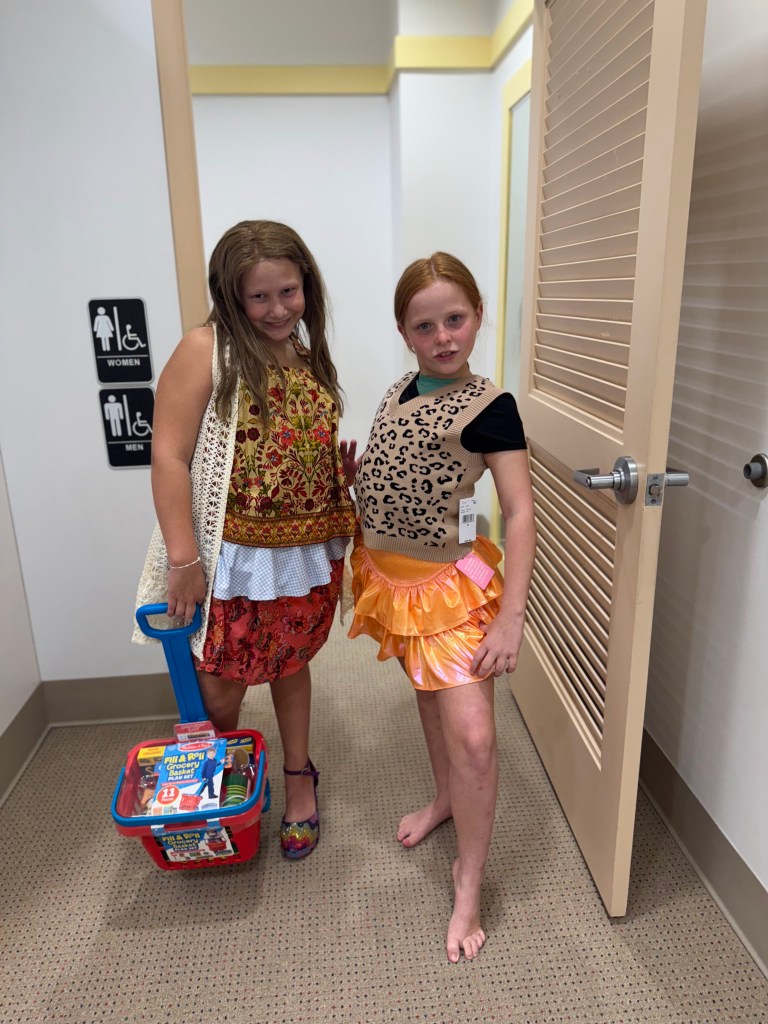 Then back to school shopping with Grace! They secretly picked out a silly outfit for each other to try on, and they were cracking me up!