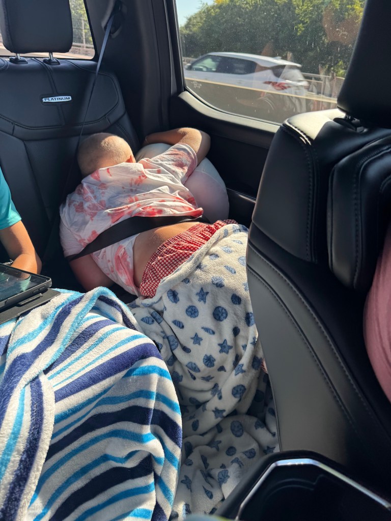 Finally made it to the house and after hours of swimming in the pool with his cousins, sweet boy couldn’t hang