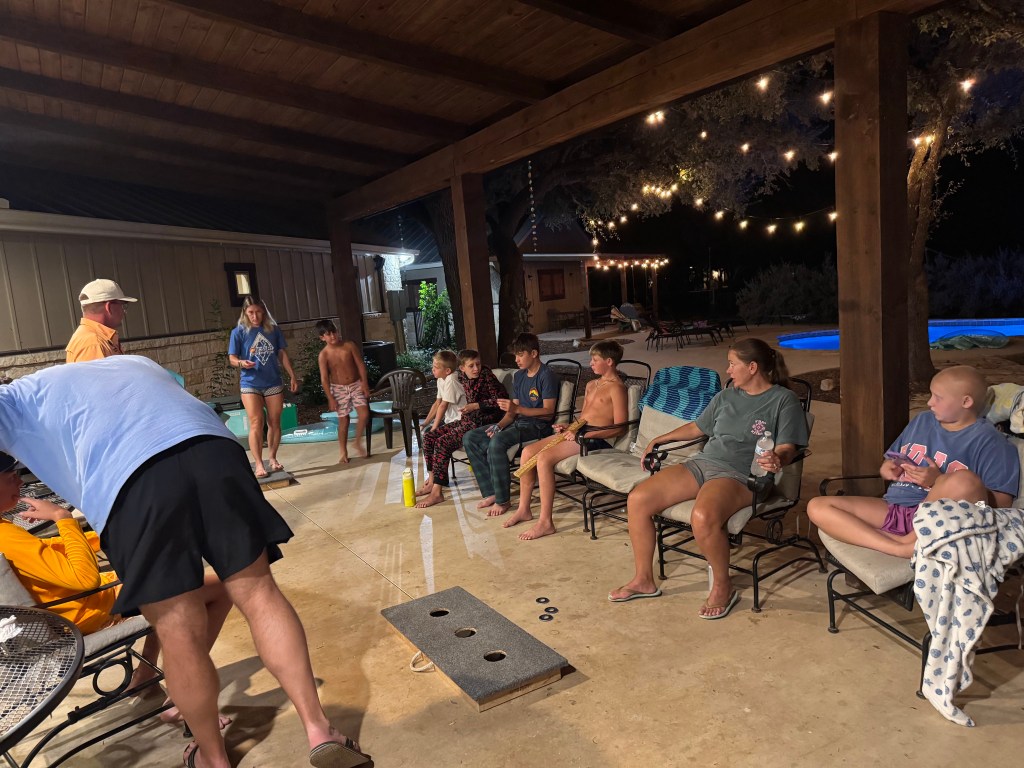 Even though there was a damper on the evening, that didn’t stop us from competing in the annual Hundl Family Couples Washers Tournament!