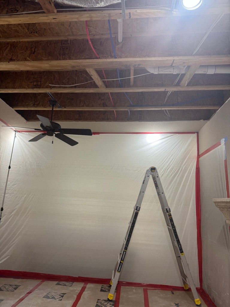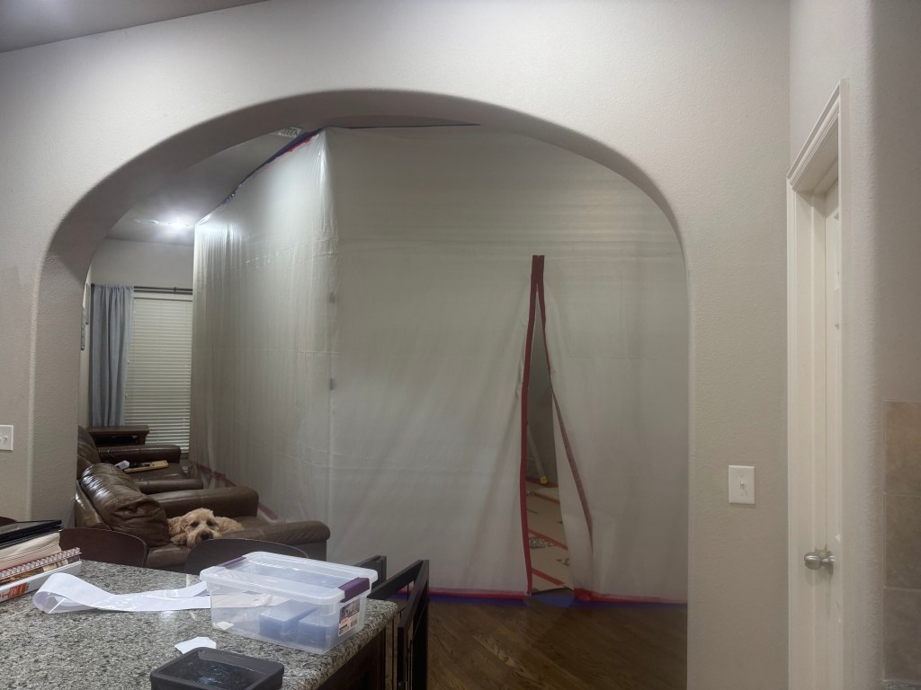 Fortunately, we have friends that own a water damage restoration company that were able to come over the next day and start the damage control. Unfortunately, we had to live with this tent contraption thingy with fans blowing 24/7 for two whole weeks.