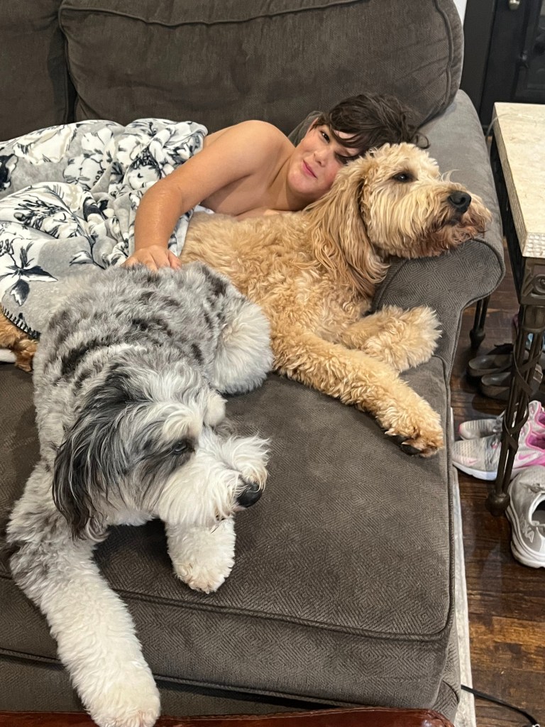 The weather has been absolutely gorgeous, and since she won’t go on a walk with me, I made her take the pups to the dog park to get outside!