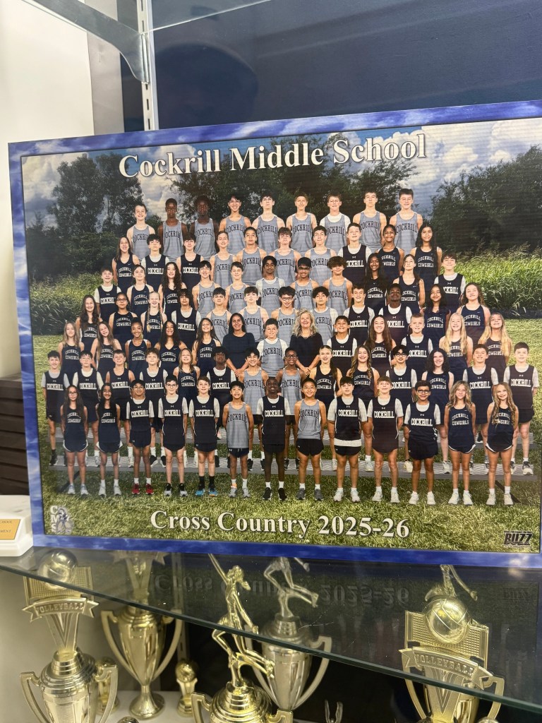 Saw this as we were walking out of the school. I didn’t even know Cross Country took a team pic! Brooks is on the second row from the bottom, third from the left