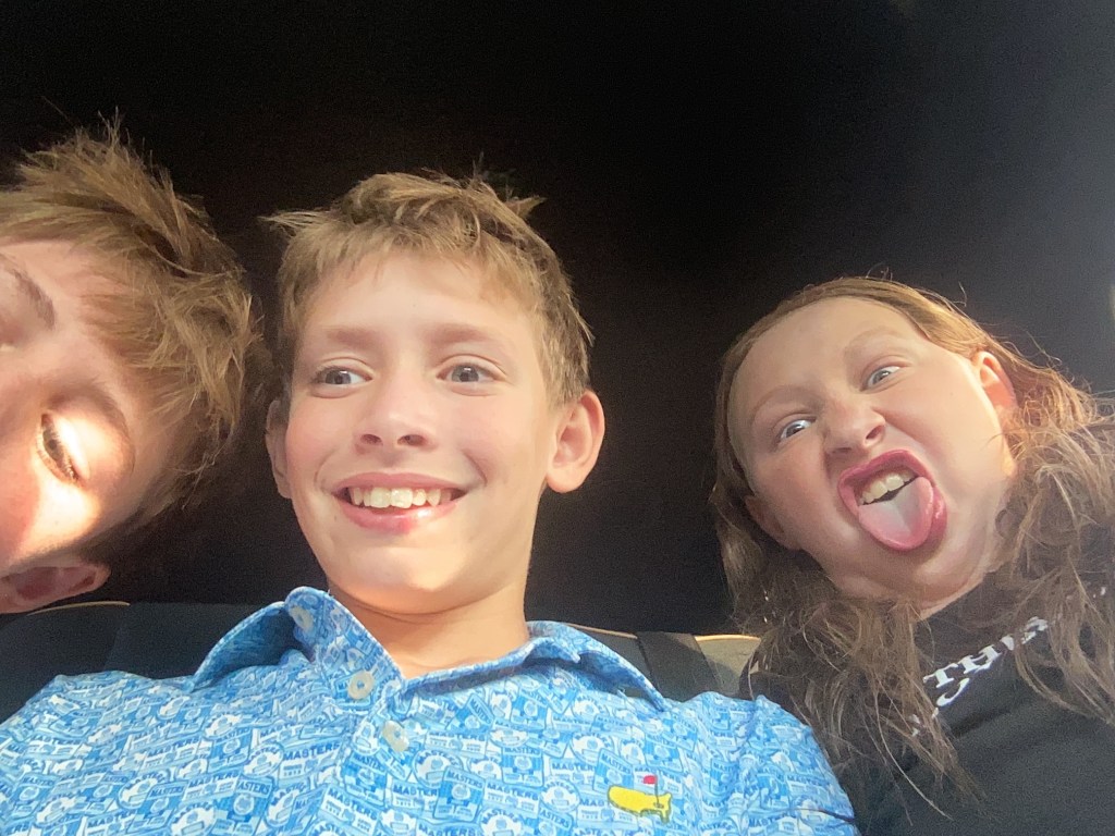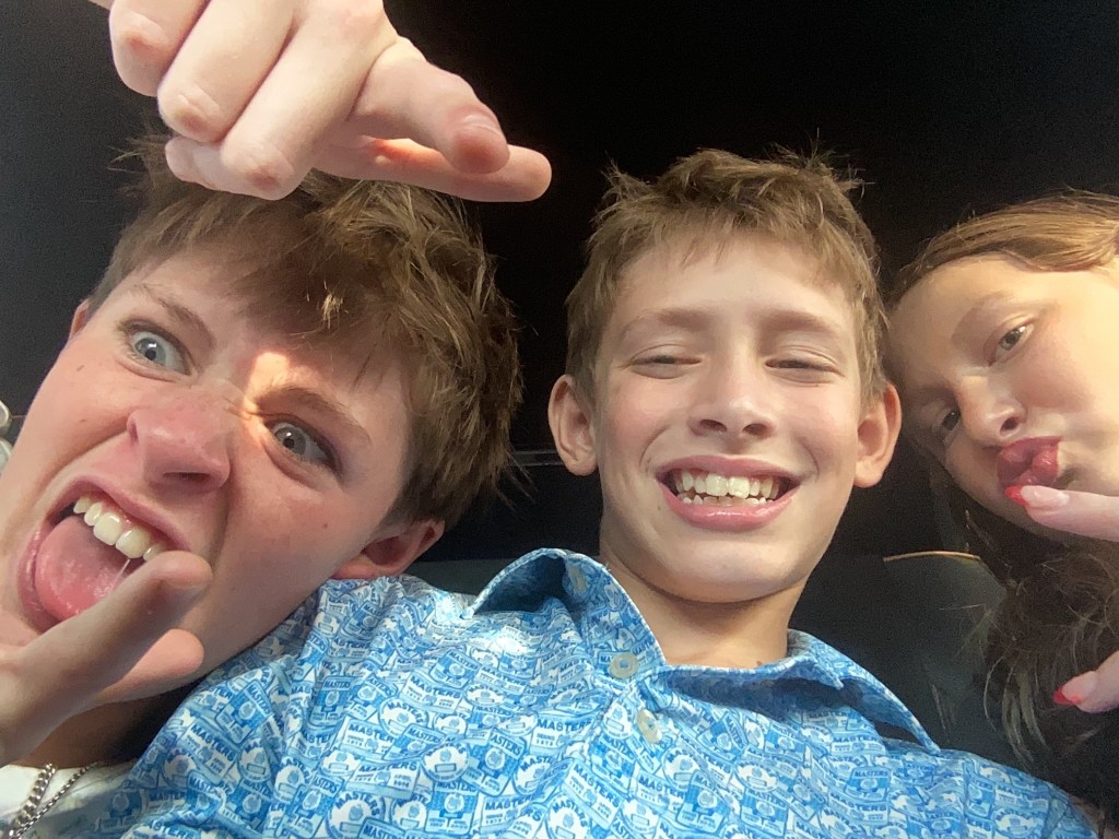 The kids stole my phone and took these selfies in the car on the way to church, lol