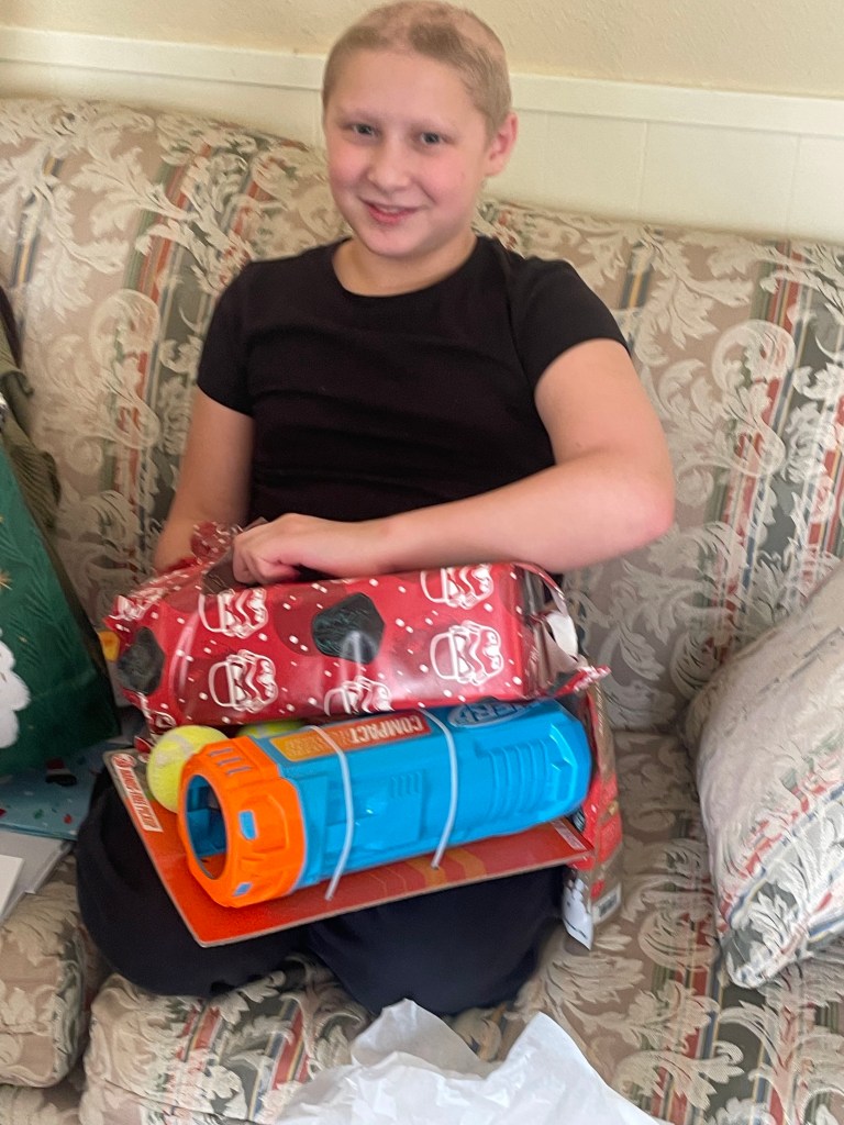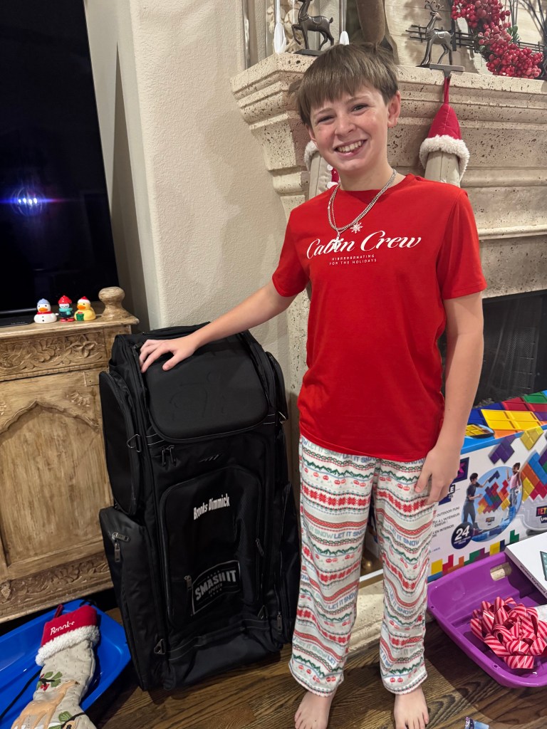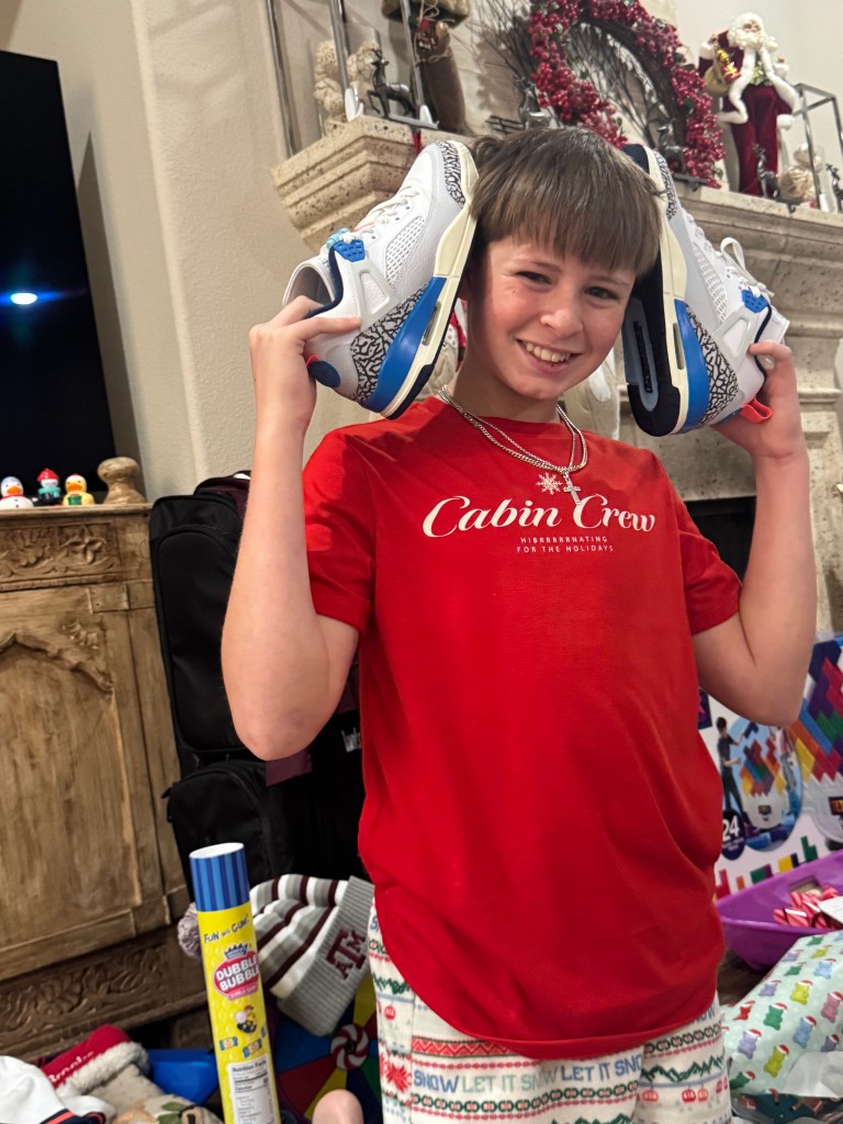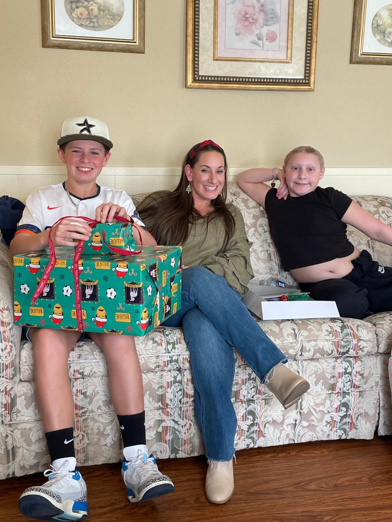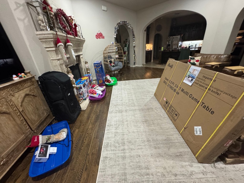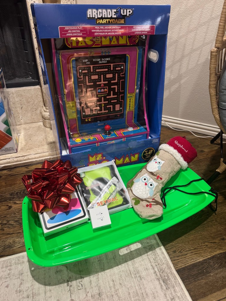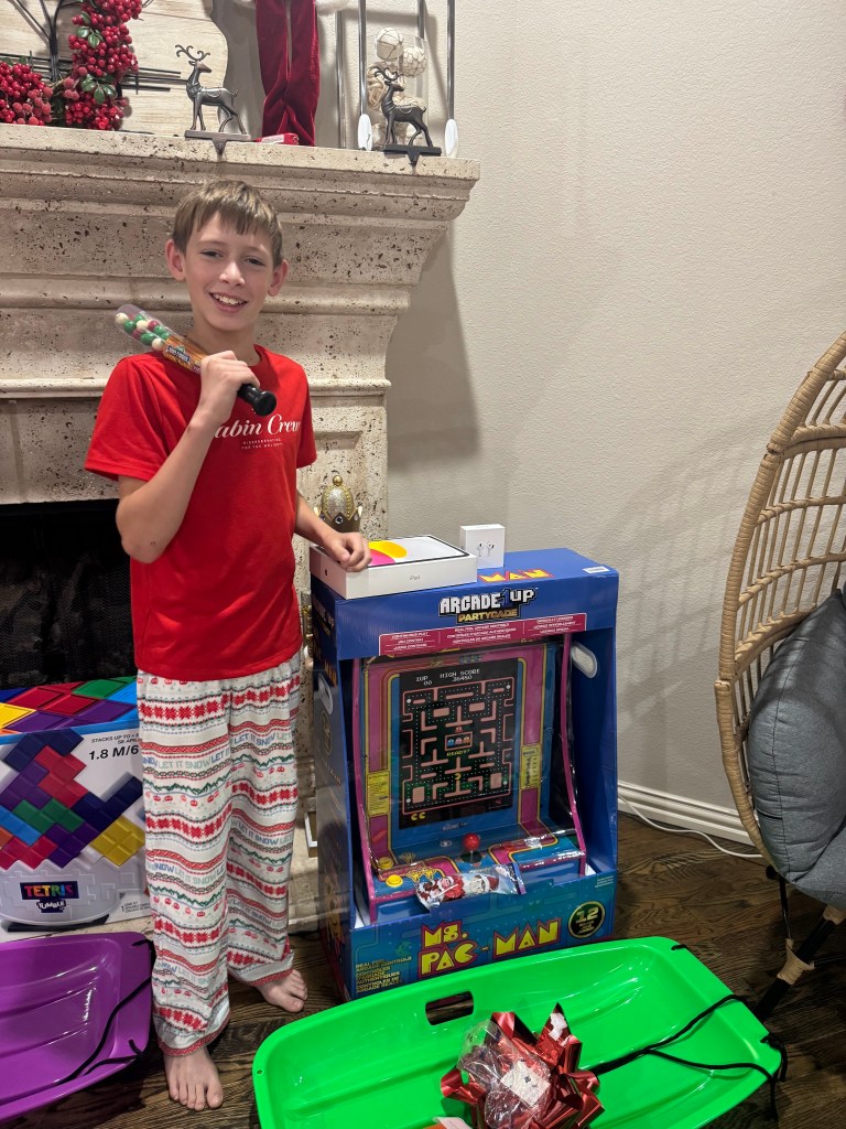 Aunt Lesly tricked us with her clever wrapping of the “D”ustpan with the “D”ick’s giftcard!