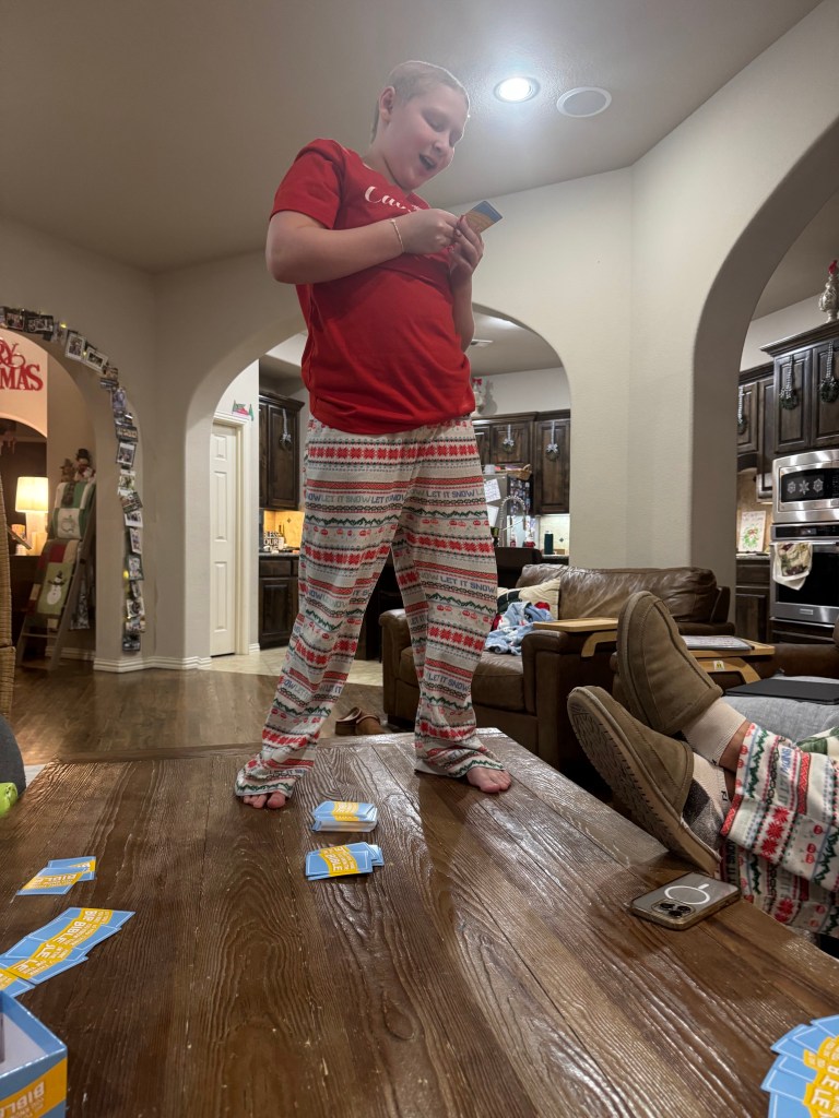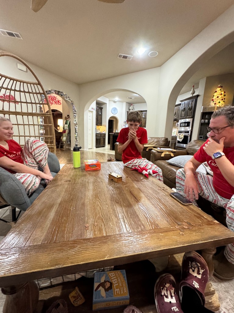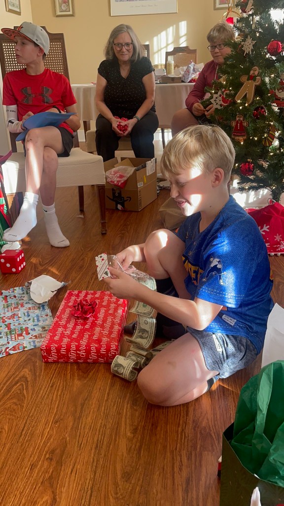 So glad Levi rolled the “D”ice Grandma got as her gift and ended up with the “Dollars I gave as my gift! Such a fun new tradition!